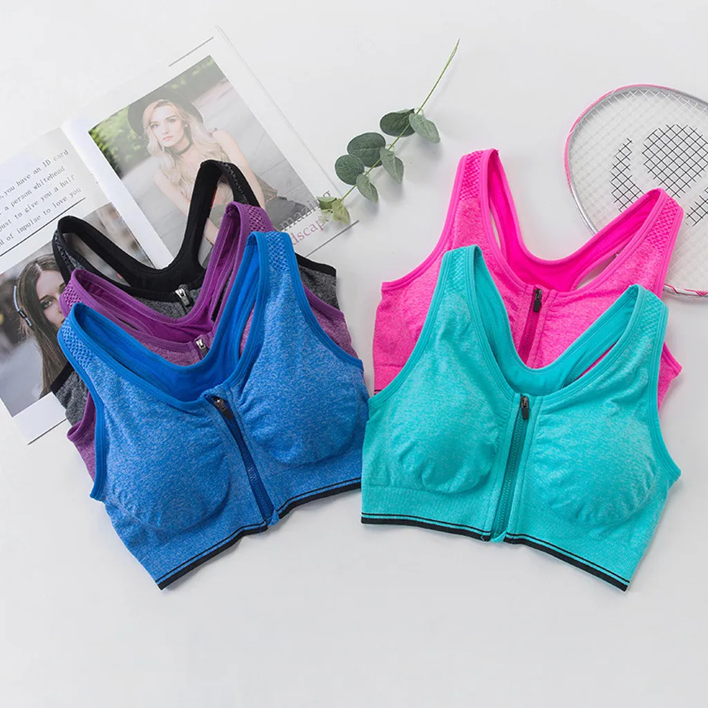 Бесшовный беспроводной женский спортивный бюстгальтер Воздухопроницаемый спортивный бюстгальтер на молнии для йоги