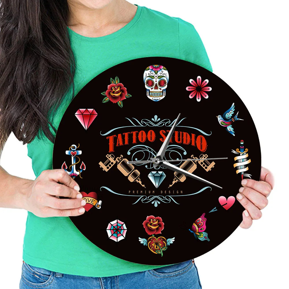 Современные настенные часы для студии тату