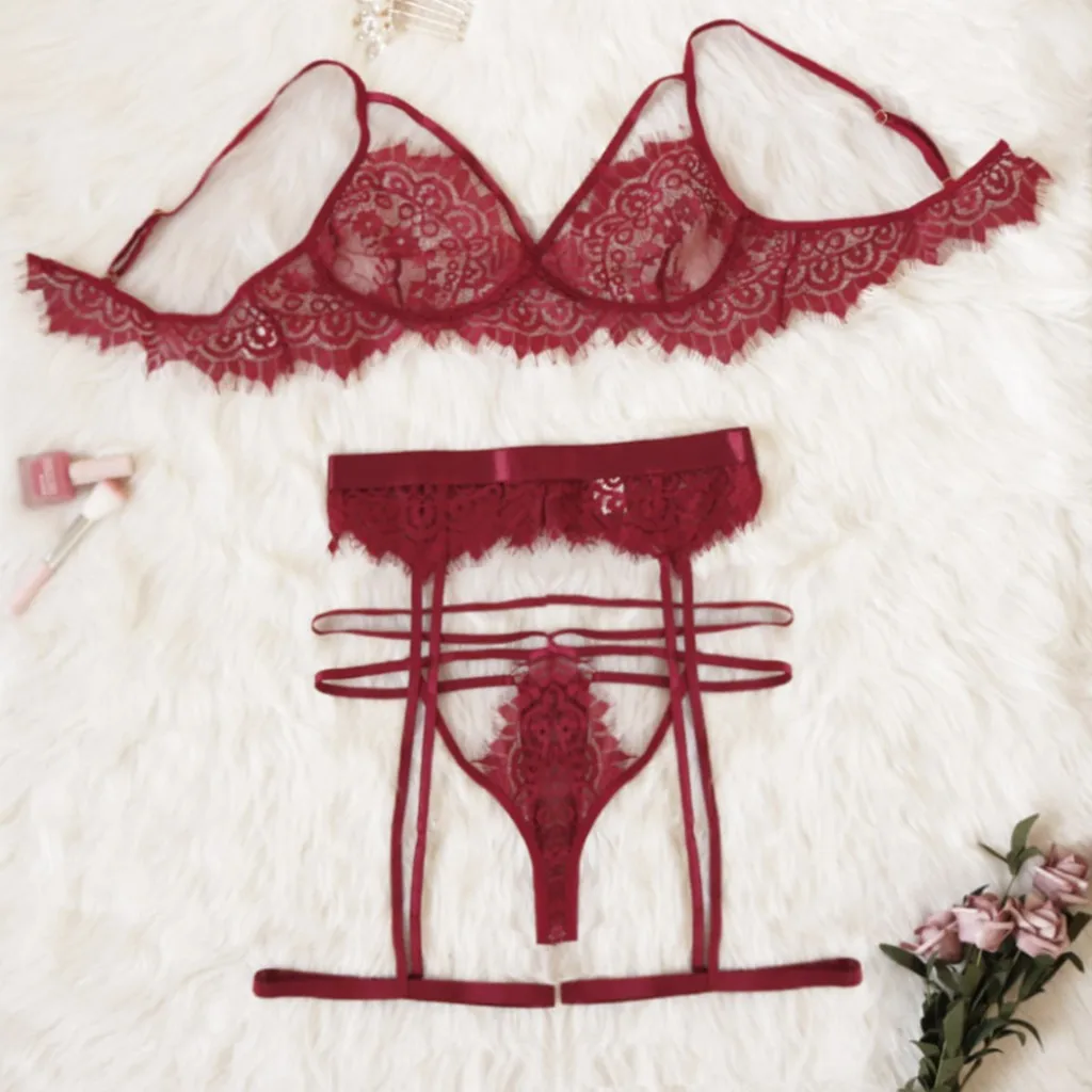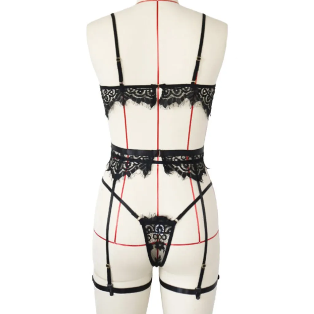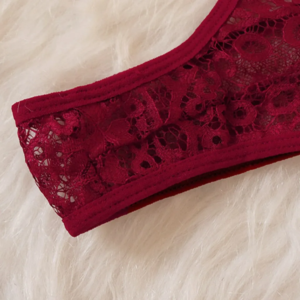 Женское сексуальное кружевное нижнее белье, набор размера плюс, бюстгальтер, полые стринги, подвязки, комплект нижнего белья