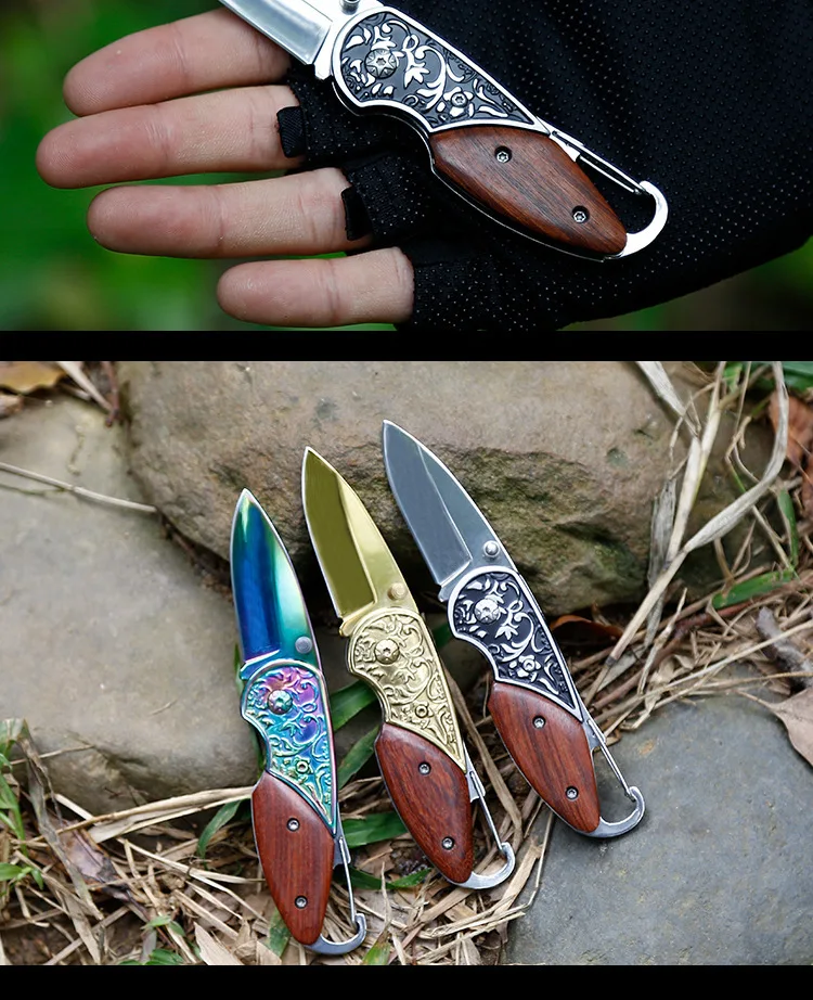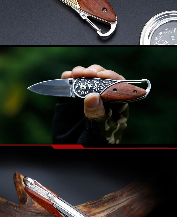 Мини-нож складной с карабином, 5,3 дюйма, 58HRC