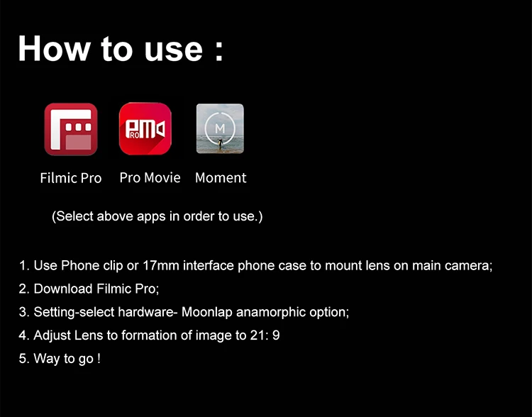 1. Используйте Зажим для телефона или 17 мм Интерфейс чехол для телефона для крепления объектива на основной камере;