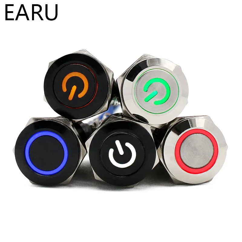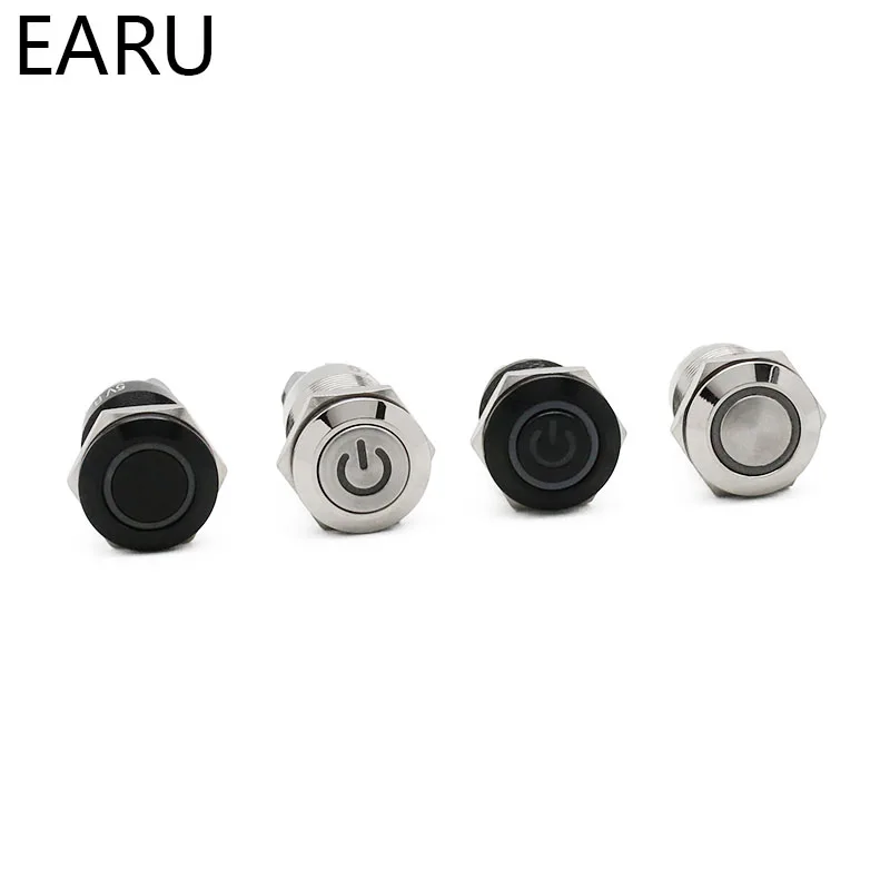 12 мм водонепроницаемый металлический кнопочный переключатель светодиодный светильник черный Выключатель без фиксации двигателя автомобиля PC выключатель питания 3-380 В Красный Синий Зеленый горячий