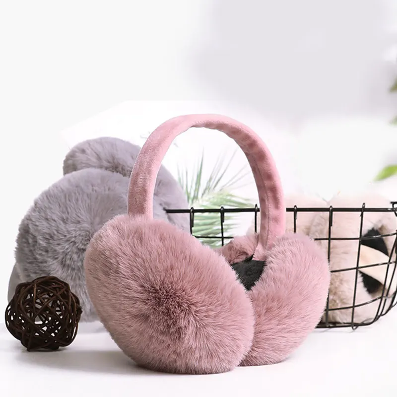 Однотонные цветные наушники из искусственного меха, зимние теплые складные пушистые плюшевые наушники