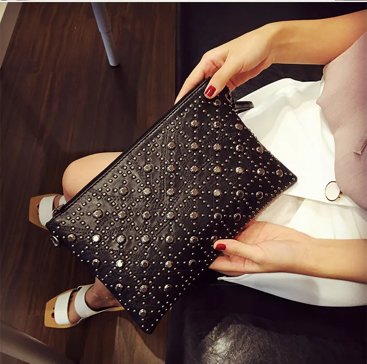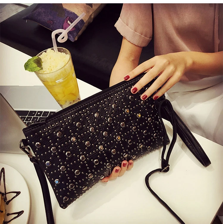 Женская сумка через плечо YBYT, черная мини-сумка-клатч из искусственной кожи с заклепками, в стиле пэчворк