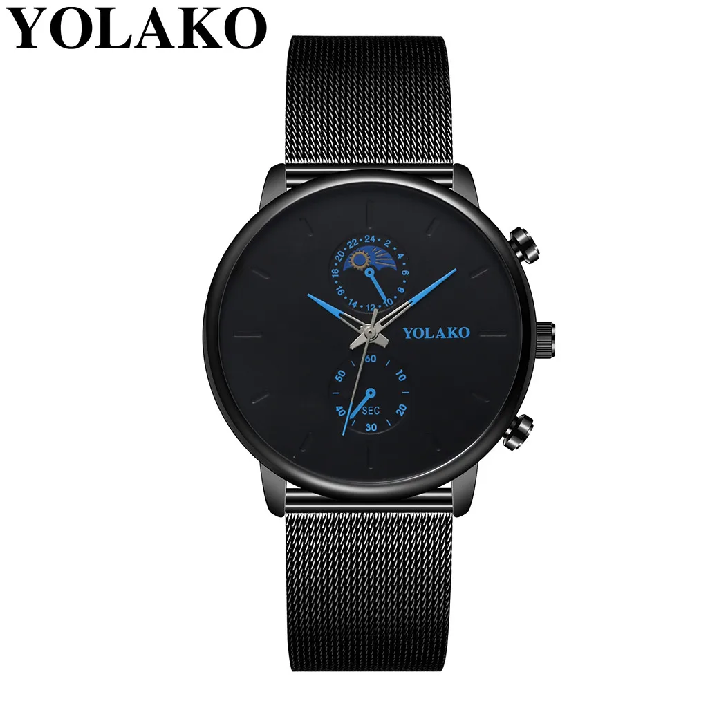 Часы YOLAKO, мужские повседневные кварцевые часы с ремешком из нержавеющей стали, аналоговые наручные часы, деловые мужские часы, подарок, relogio masculino