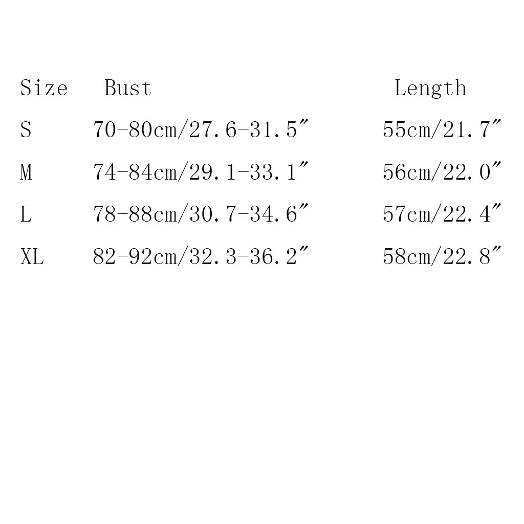 Размеры Обхват груди Длина S 70-80 см/27,6-31,5" 55 см/21,7" М 74-84 см/29,1-33,1'' 56 см/22,0" L 78-88 см/30,7-34,6'' 57 см/22,4" XL 82-92 см/32,3-36,2'' 58 см/22,8"