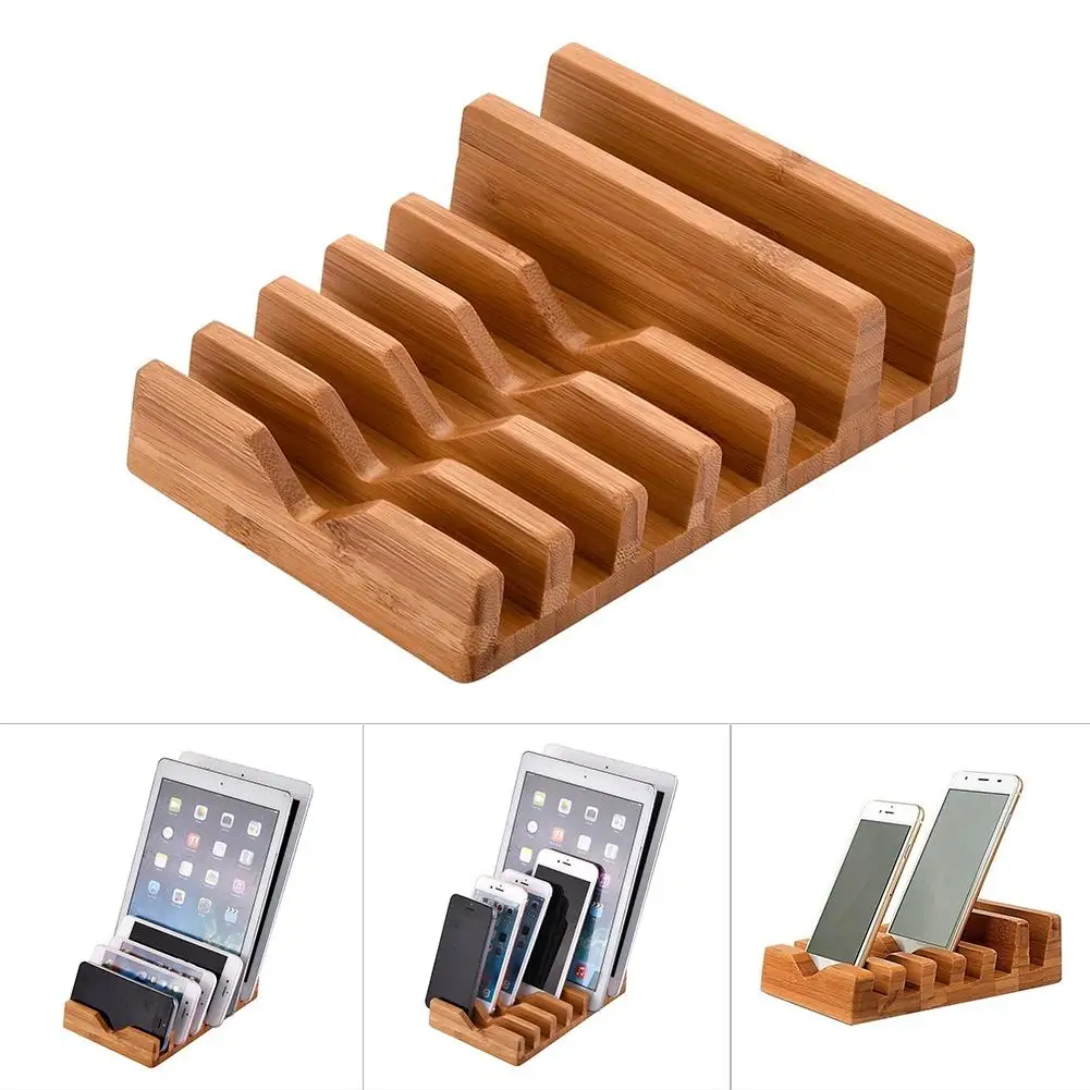 Универсальная настольная подставка для планшета с 6 слотами, бамбуковый держатель для мобильного телефона, подставка для планшета, держатель для планшета, подходит для iPhone