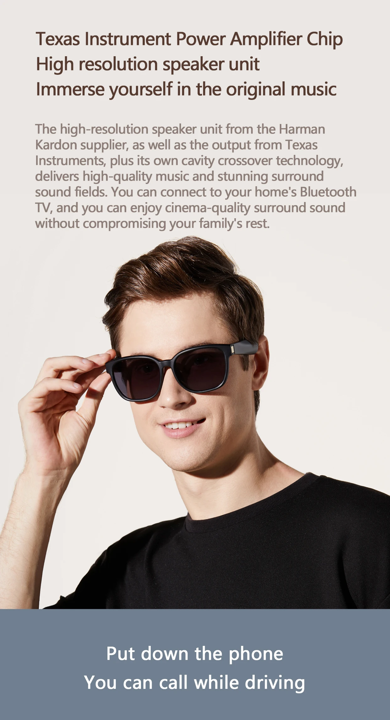 Умные очки Bluetooth 5,0, DC5V, голосовые звонки, siri, музыкальный динамик, QCC3034 pk, k01chip, ipx4, tr90, 120 мАч
