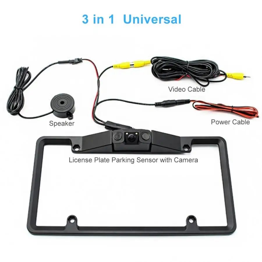 3 в 1 рамка номерного знака автомобиля Парковка Сенсор радар заднего вида резервного копирования Камера 2LED