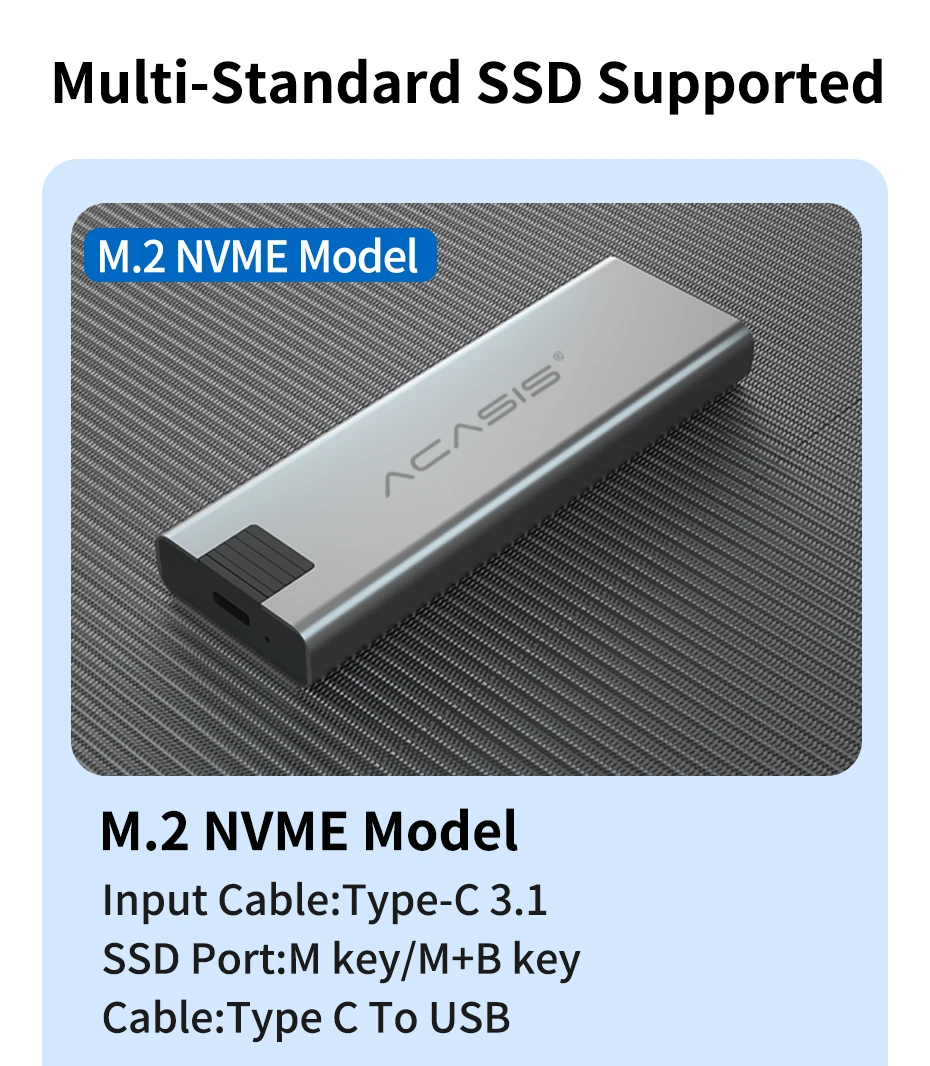 【Обратите внимание: Есть 3 модели по желанию, NGFF протокол чехол не совместим с NVMe протокол SSD. Пожалуйста, подтвердите свой протокол M.2 SSD перед заказом.