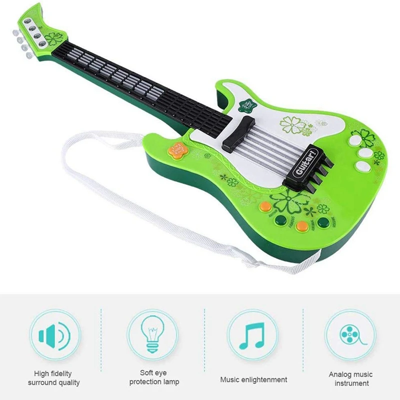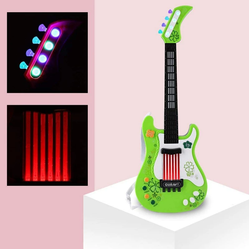 Гитарная игрушка, многофункциональная детская бас-гитара электрическая игрушечная гитара со звуком и светом, игрушка для музыкального инструмента (зеленая)