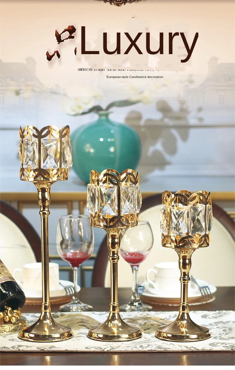 Nordic Glass Candlestick Crystal Gold Wedding Household Romantic Lights Ins Centre De Table Mariage Candlelight Dinner FC144