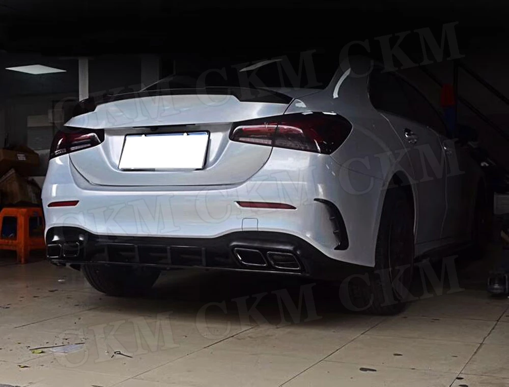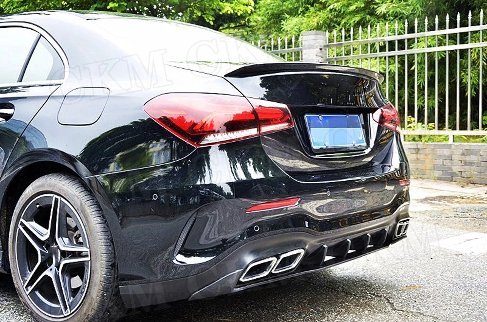 PP Черный задний диффузор для Mercedes Benz A Class W177 A180 A200 A250 A35 2019 2020 304 нержавеющая сталь 4 выпускных наконечника