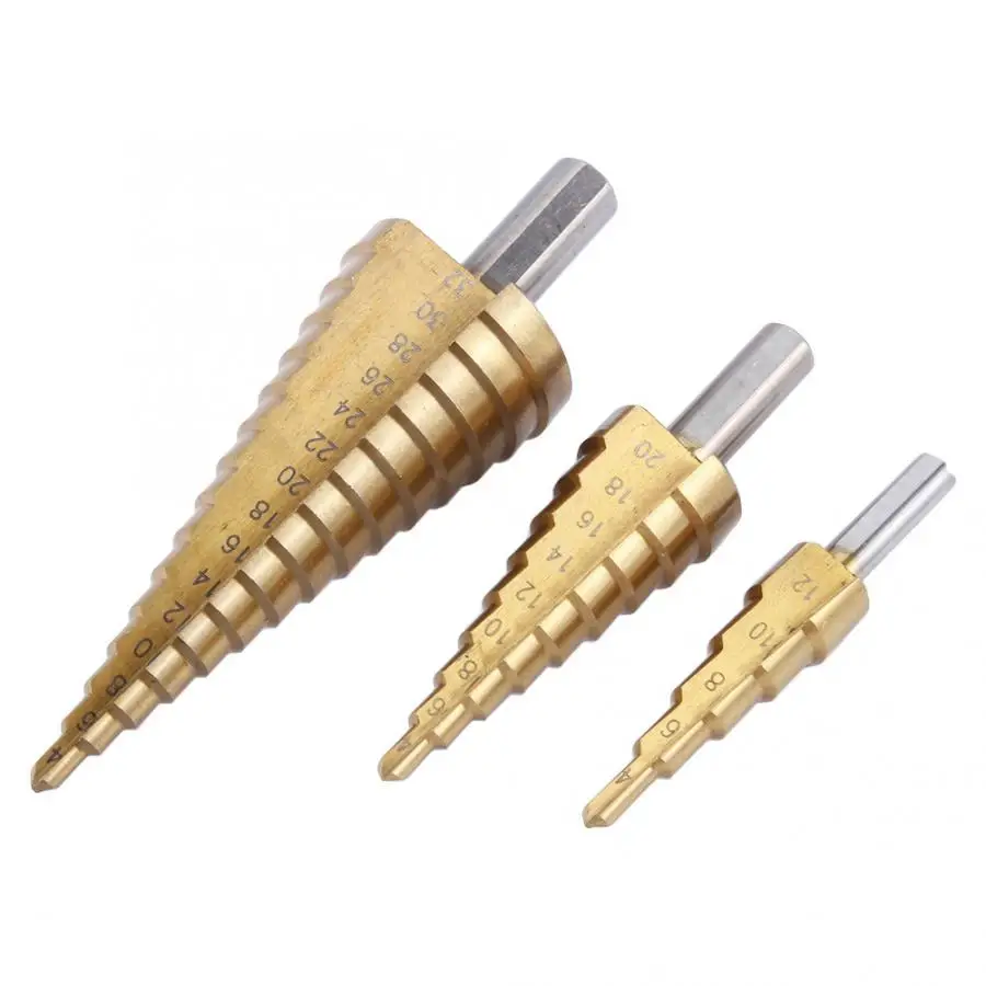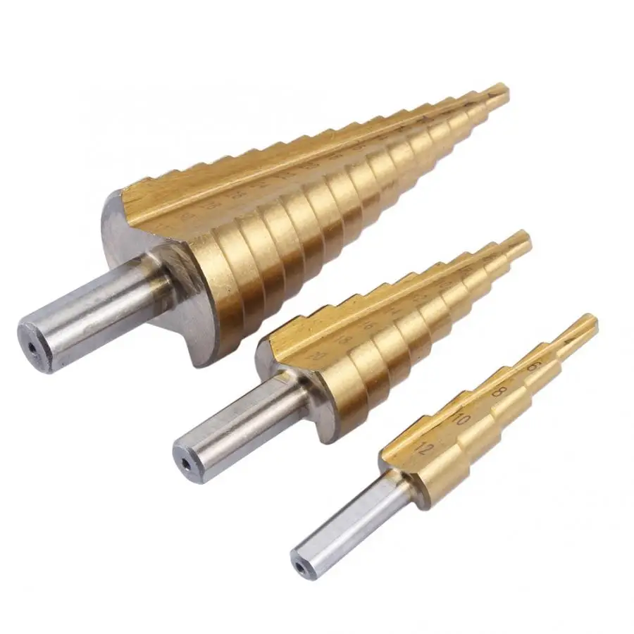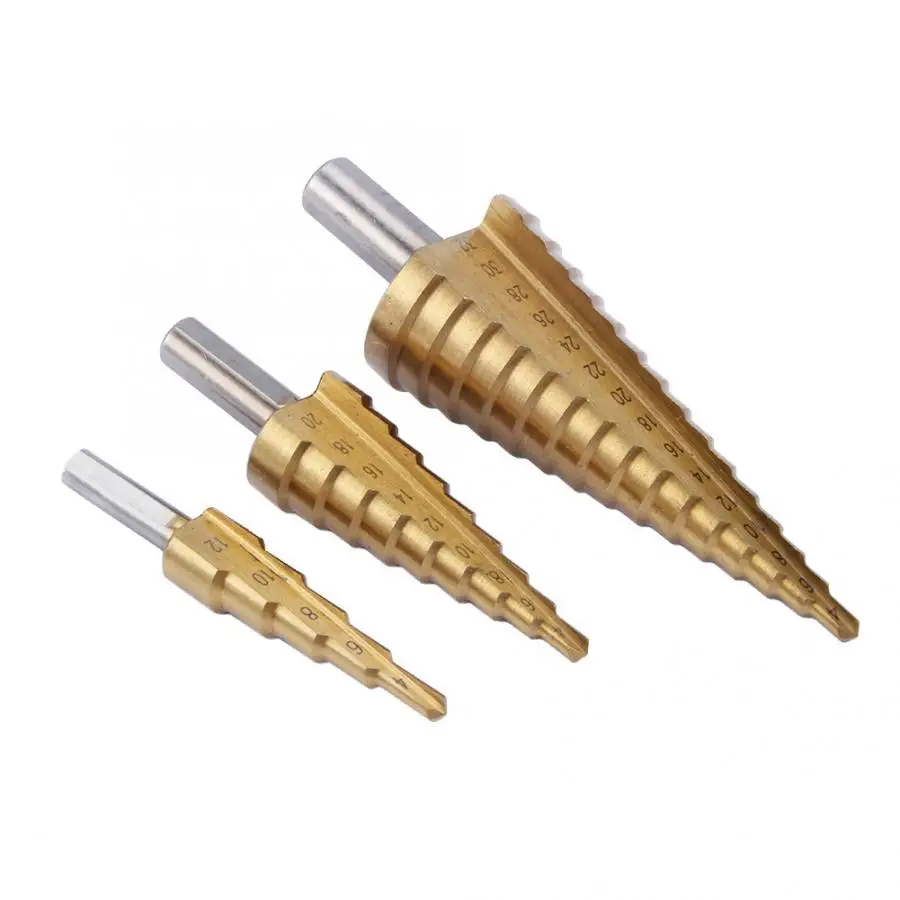 3 шт. набор титановых нитридов HSS стальное покрытие ступенчатые сверла с быстрым хвостовиком отверстие