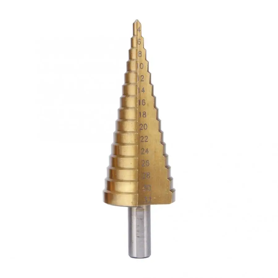 Это 3 шт. титановое нитридное покрытие высокоскоростное стальное сверло позволяет точно сверлить 28 отверстий разного размера. Ступенчатые сверла имеют двойной Рифленый Дизайн для оптимальной скорости и точности. Изготовлен из высокоскоростной стали M42 с титановым покрытием для снижения трения и тепла.