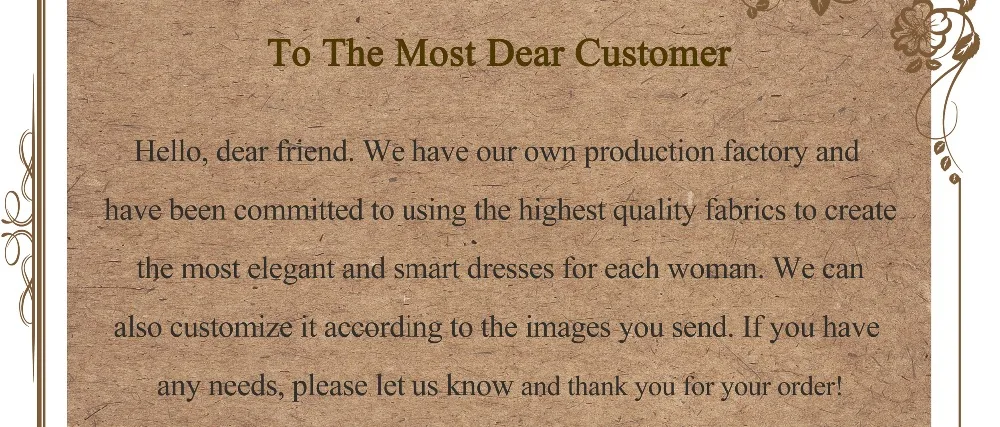 1. Полная грудь = дюймы или сантиметры2. Талия =3. Бедра =4. От плеча до пола = (от плеча до пола с обувью)Самые красивые платья требуют самого изысканного украшения.