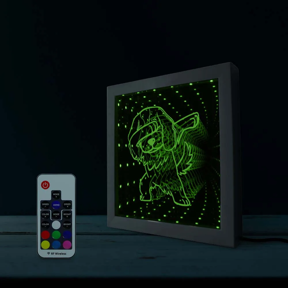 Создавая потрясающую оптическую иллюзию, зеркальная рамка Infinity использует умный светильник и зеркала, чтобы, похоже, сгибать светильник в бесконечное пространство, делая это умным предметом настенного искусства, а также идеальным подарком на светильник. Рамка для зеркала Infinity может быть либо настенной, либо левой отдельно стоящей.