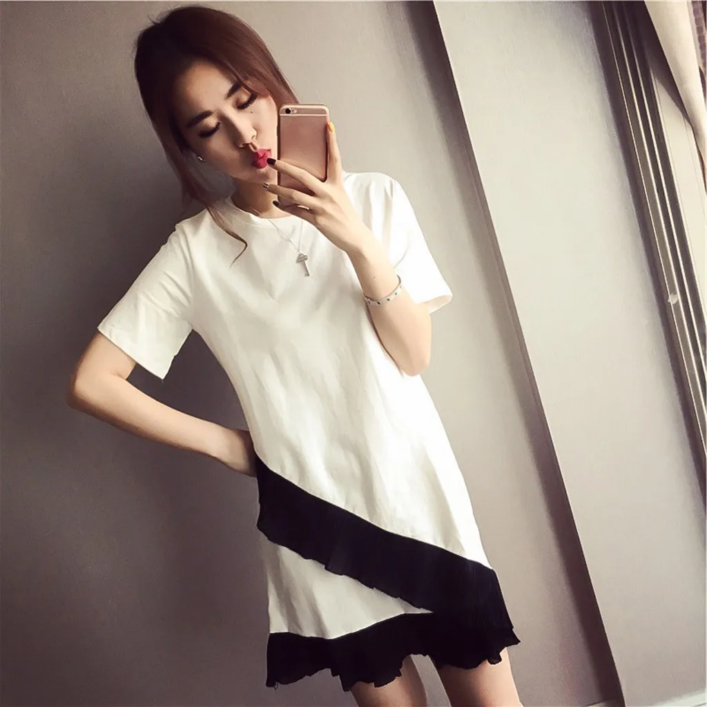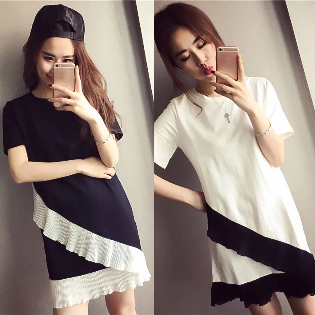 Женское повседневное тонкое летнее платье с коротким рукавом и круглым вырезом