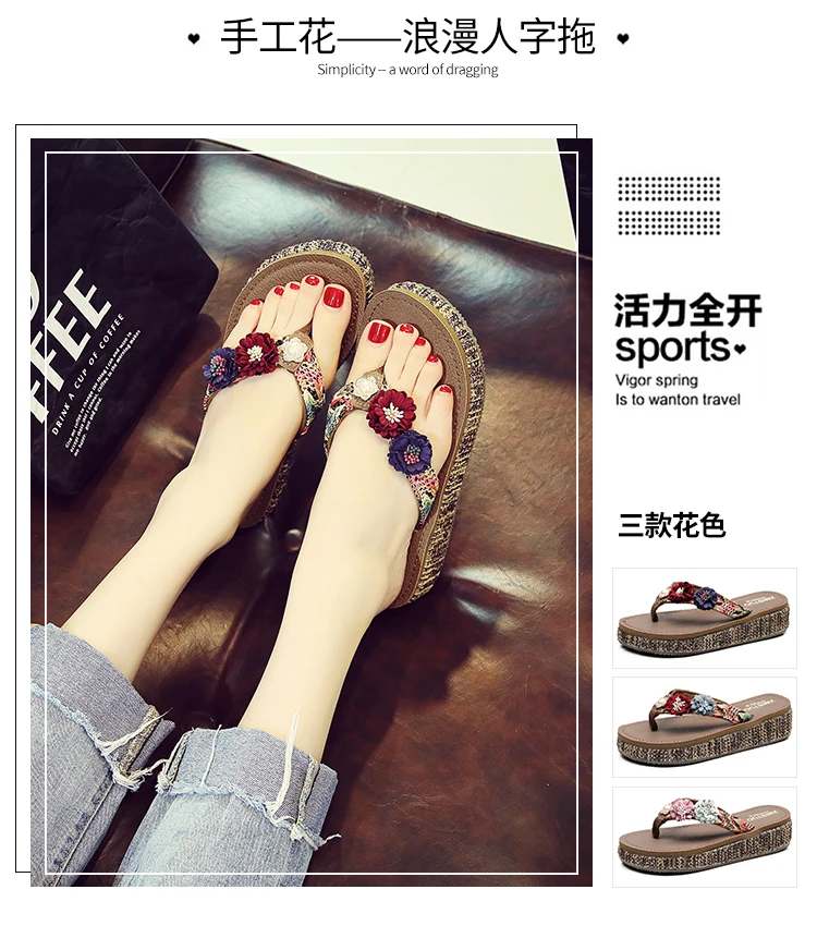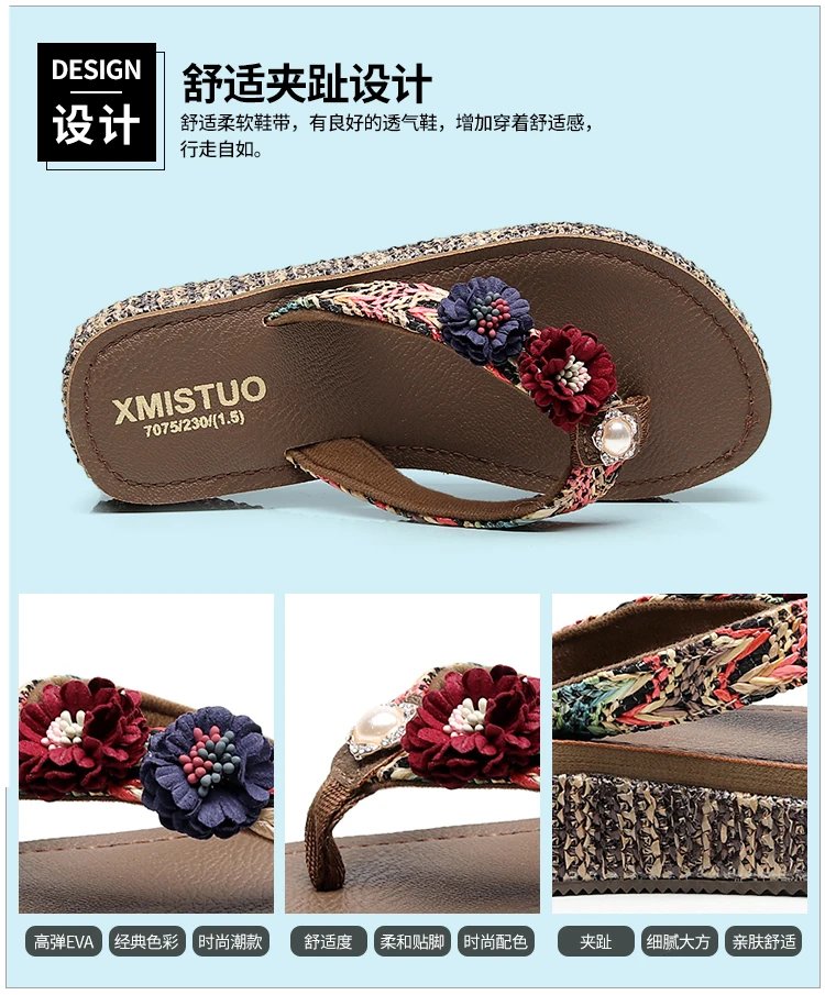 Льняные сандалии; Этнические женские шлепанцы с цветочным рисунком
