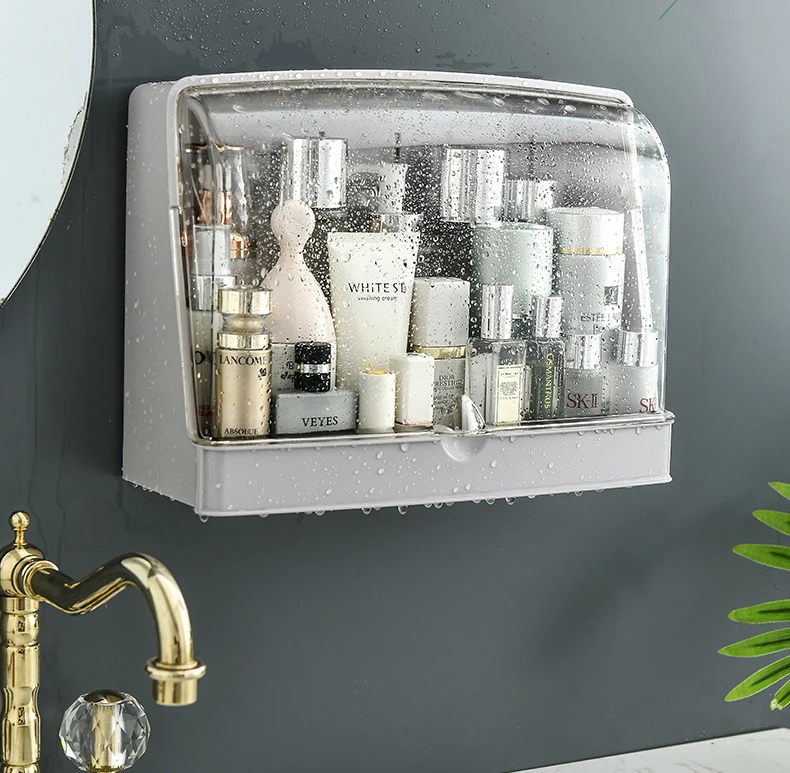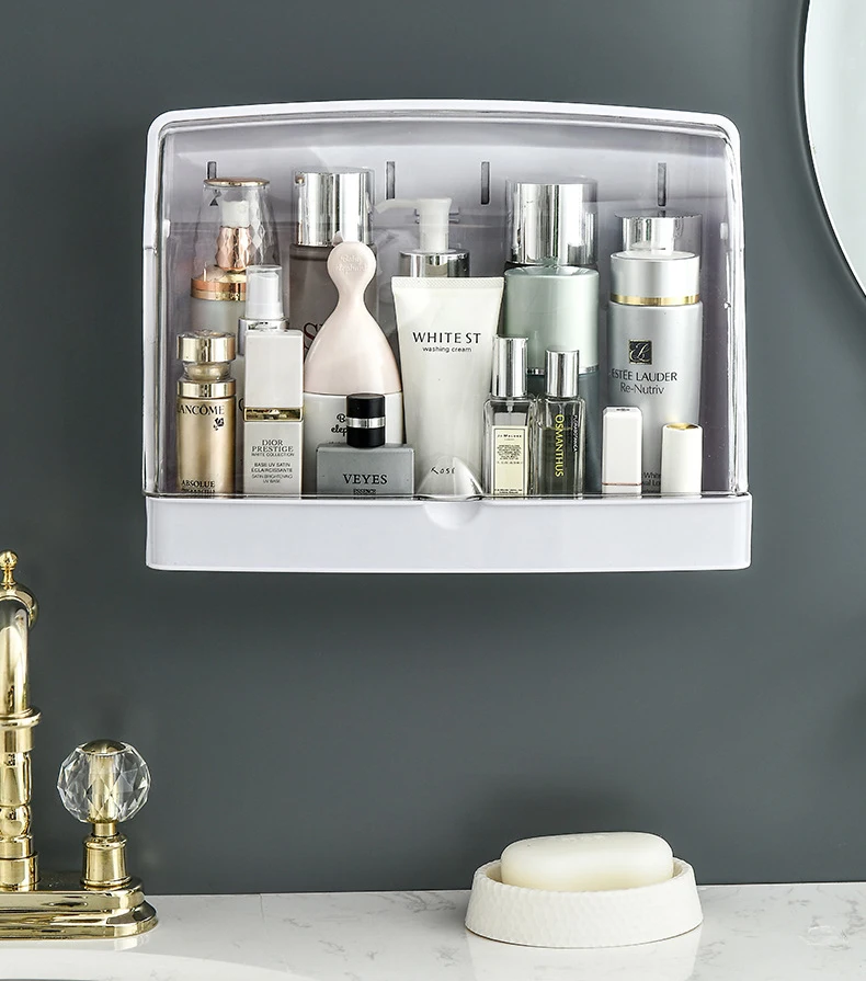 Лидер продаж, органайзер для макияжа, настенная вешалка для ванной комнаты, косметический витрина, пыленепроницаемый водонепроницаемый держатель для хранения, стойка, органайзер для стола