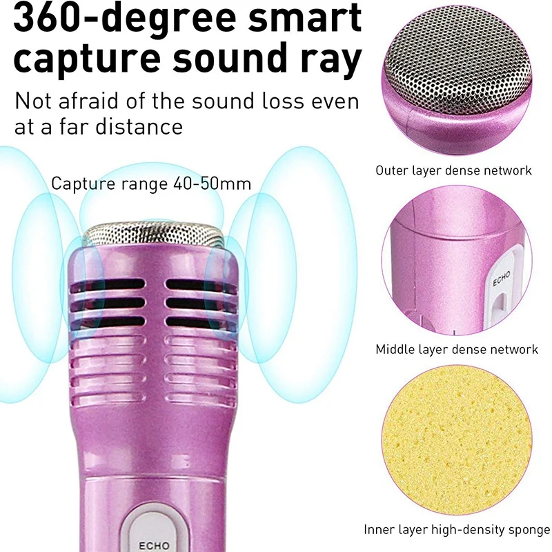 [Функция 2 в 1] это не только беспроводной микрофон караоке, но и динамик bluetooth. Он позволяет вам спеть свой голос дома, KTV, вечерние на открытом воздухе в любом месте в любое время с перезаряжаемой литиевой системой безопасности, которая работает в течение 4-5 часов. Встроенный динамик, караоке microphonefor kids может использоваться в качестве стандартного bluetooth-динамика и просто воспроизводить музыку из него. Идеально подходит для пения KTV, вечерние пения, семейного пения, путешествий пения, автомобильной стереосистемы и записи инструментов и т. Д.
