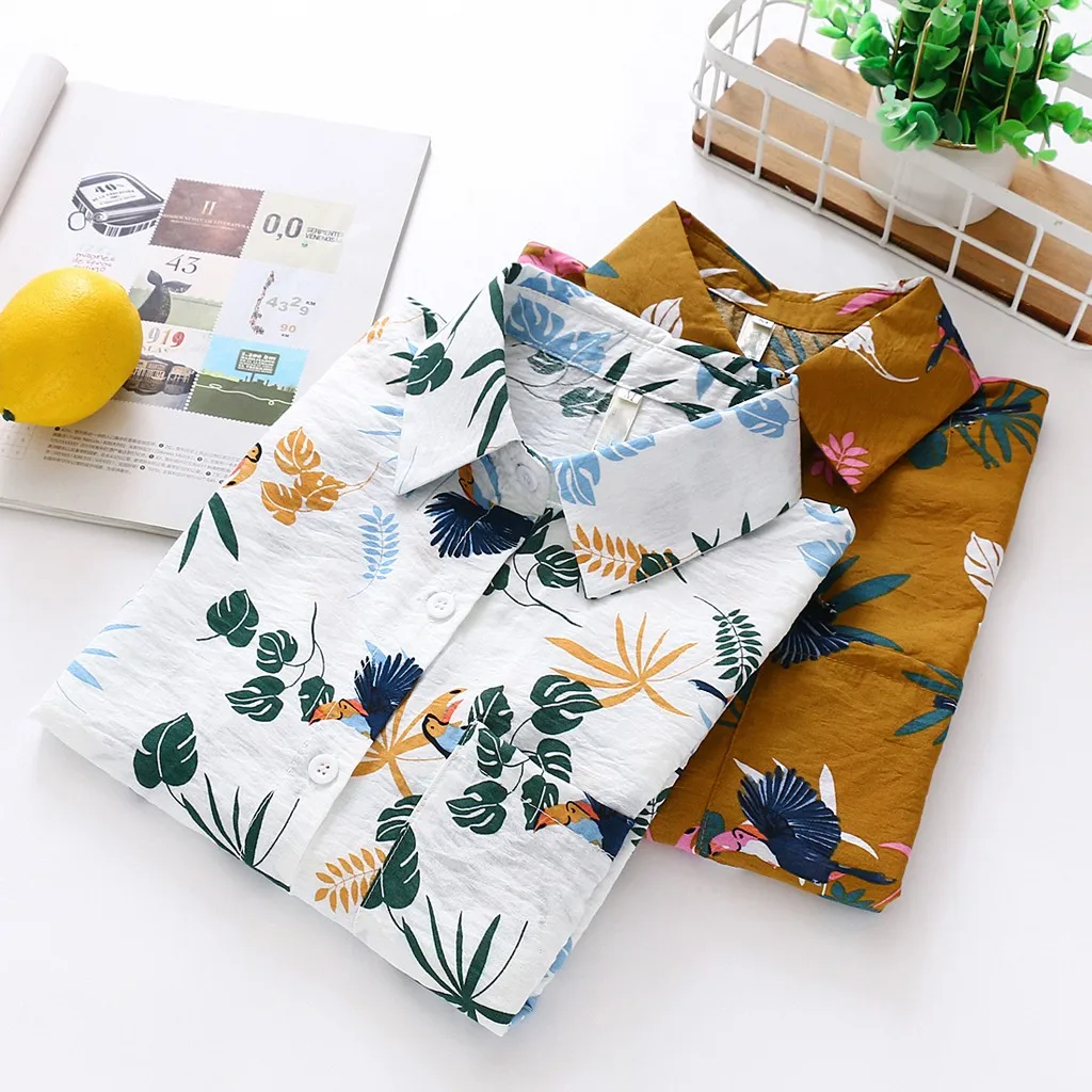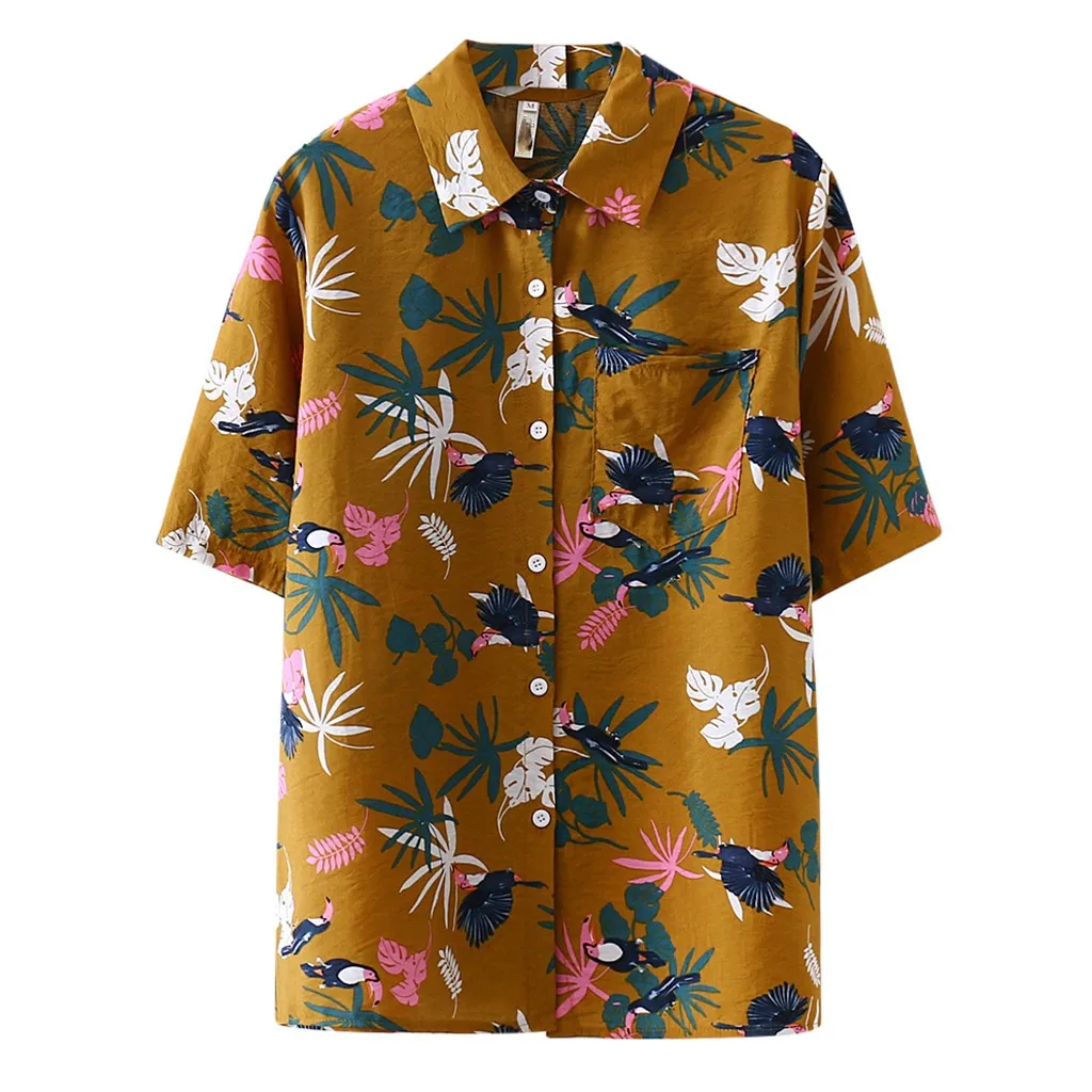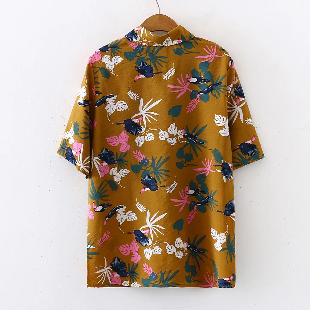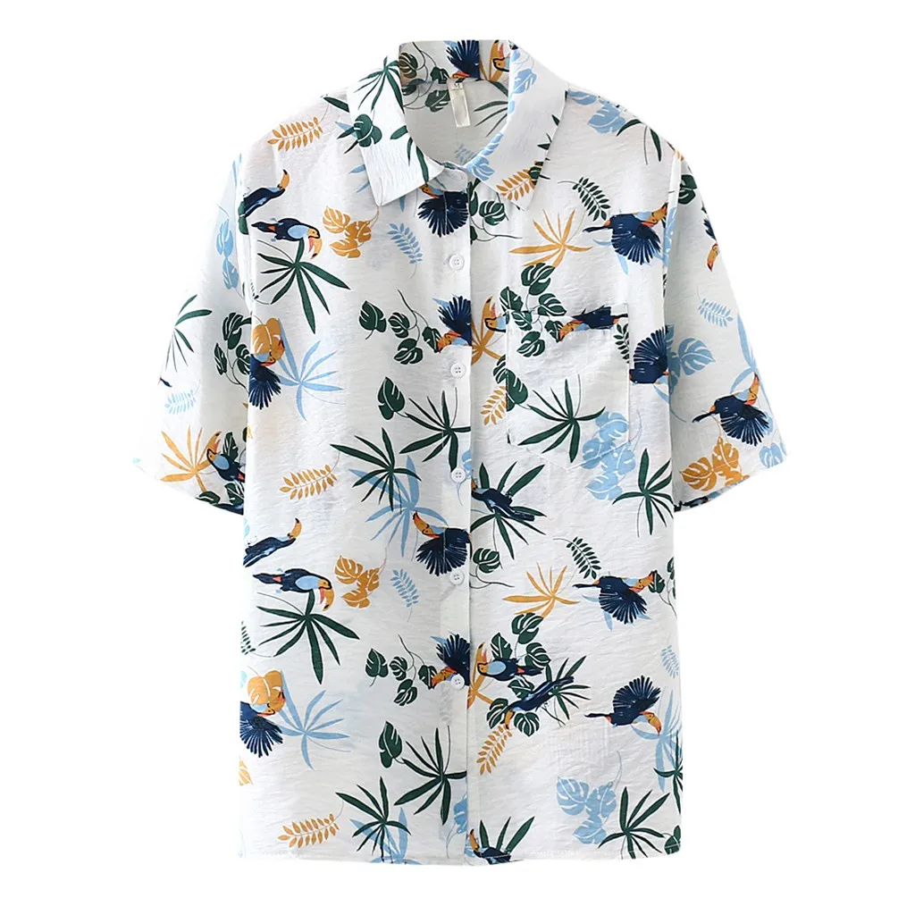 Женская Повседневная Блузка с коротким рукавом в Корейском стиле, милые рубашки на пуговицах с принтом, топы