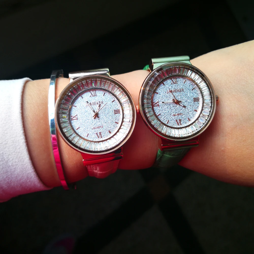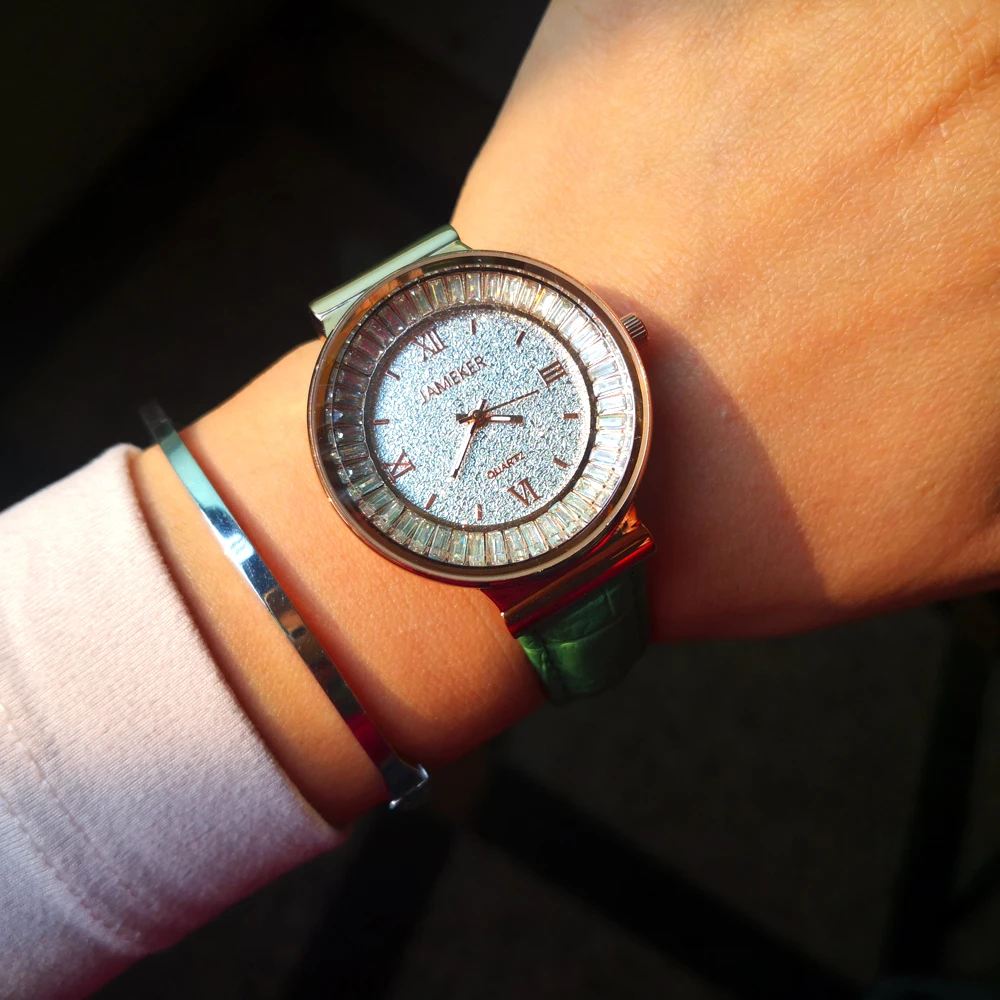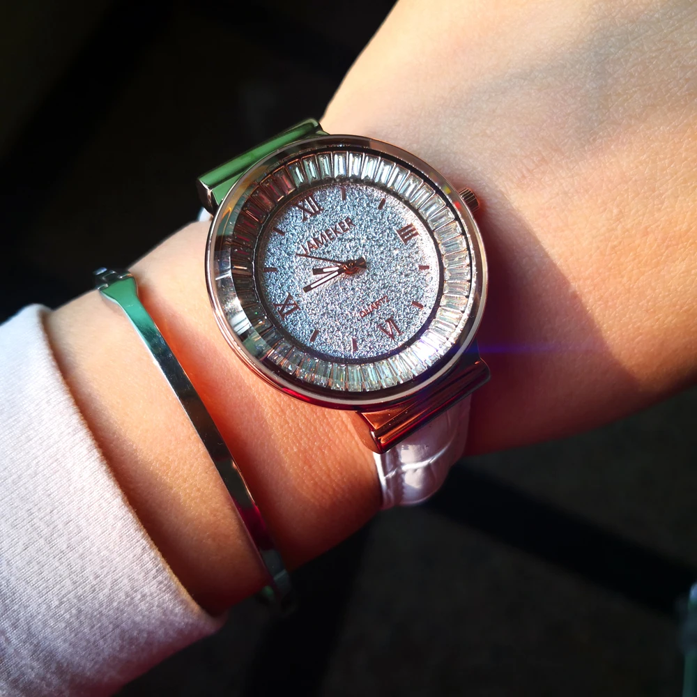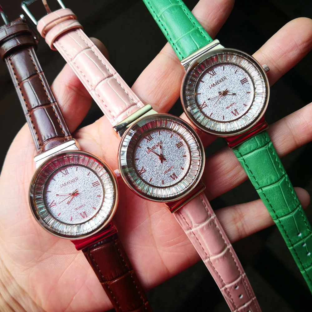 Specifications: Brand:JAMEKER Monverment:Quartz Movement Gender:Women/ladies/girl Display: Analog Sizes Case size: 40mm Band length:23cm Band width:16mm Case thickness:10mm Attention Waterproof Degree It is not waterproof for bathing or swimming!