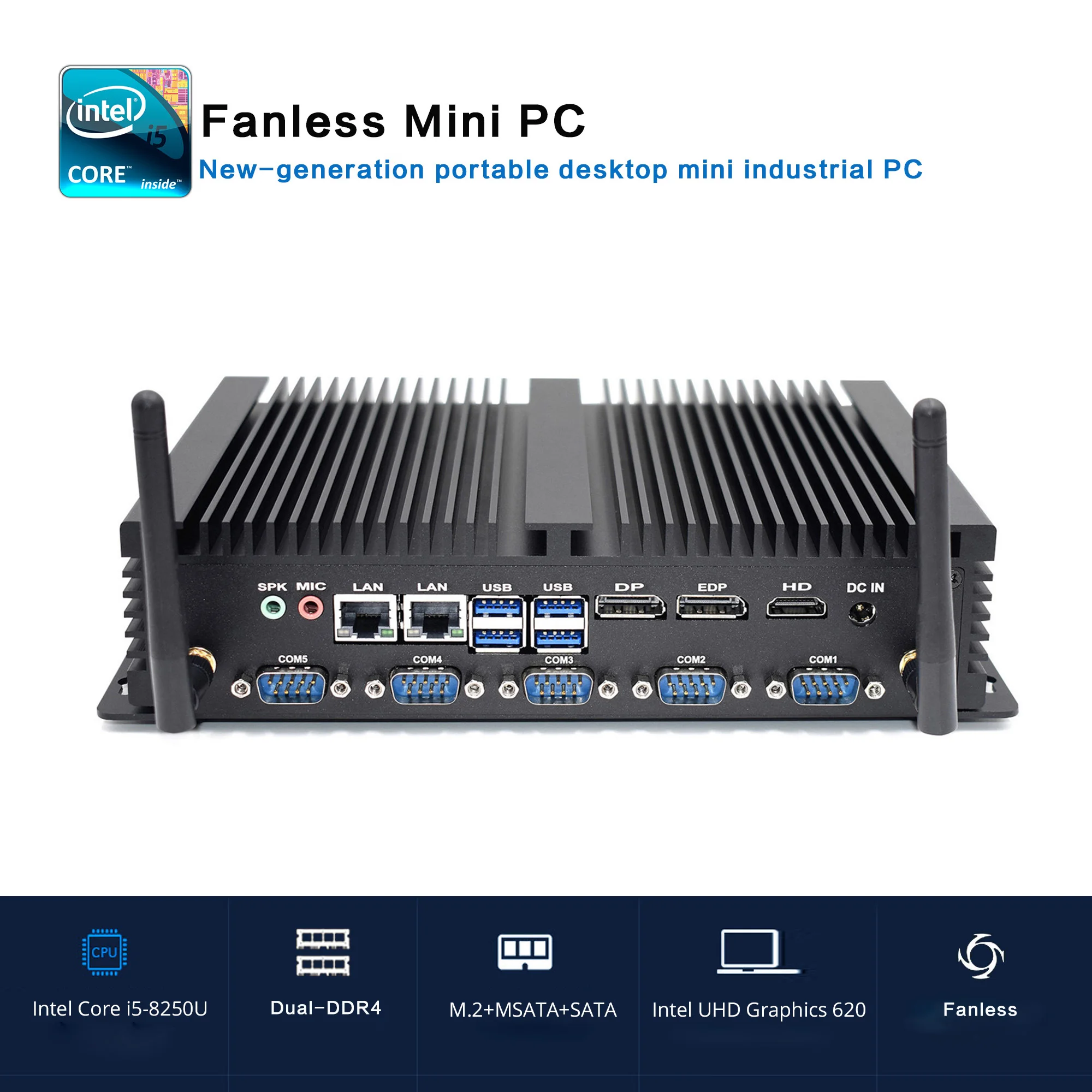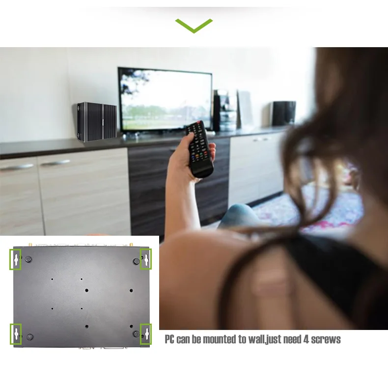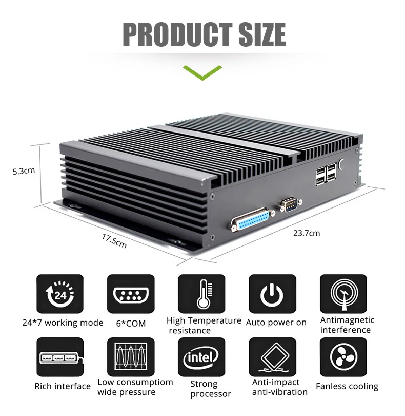 1. Встроенные процессоры Intel Core i5 8-го поколения, корпоративный офис, Домашние развлечения, Промышленный контроль, портативный настольный мини-ПК нового поколения! 2. Поддержка Windows 7, Windows 8, Windows 10, Linux; 3. Поддержка Dual DDR4L 4G/8G/16G/32G Max 32G памяти, M.2 + MSATA + SATA; 4. Поддержка UHD дисплея; 5. включает 1 * HDMI + 1 * DP + 1 * EDP + 2 * Gigabit Ethernet порт + 4 * USB 3,0 + 4 * USB 2,0 + 2 * аудио порт + 4 * RS232 COM порт + 2 * RS485 COM порт + 2 * внешние антенны + 1 * LPT порт 6. 802.11.b/g/n (150 м или 300 м дополнительно, с Bluetooth) + 2*10/100/1000 Мбит/с RJ45 сетевой порт; 7. Корпус из алюминиевого сплава, безвентиляторный бесшумный ход, нижнее охлаждающее отверстие и боковое охлаждение; 8. Поддержка vesa-монтажа за задней стенкой монитора; 9. Поддержка 3 дисплея