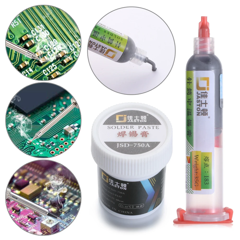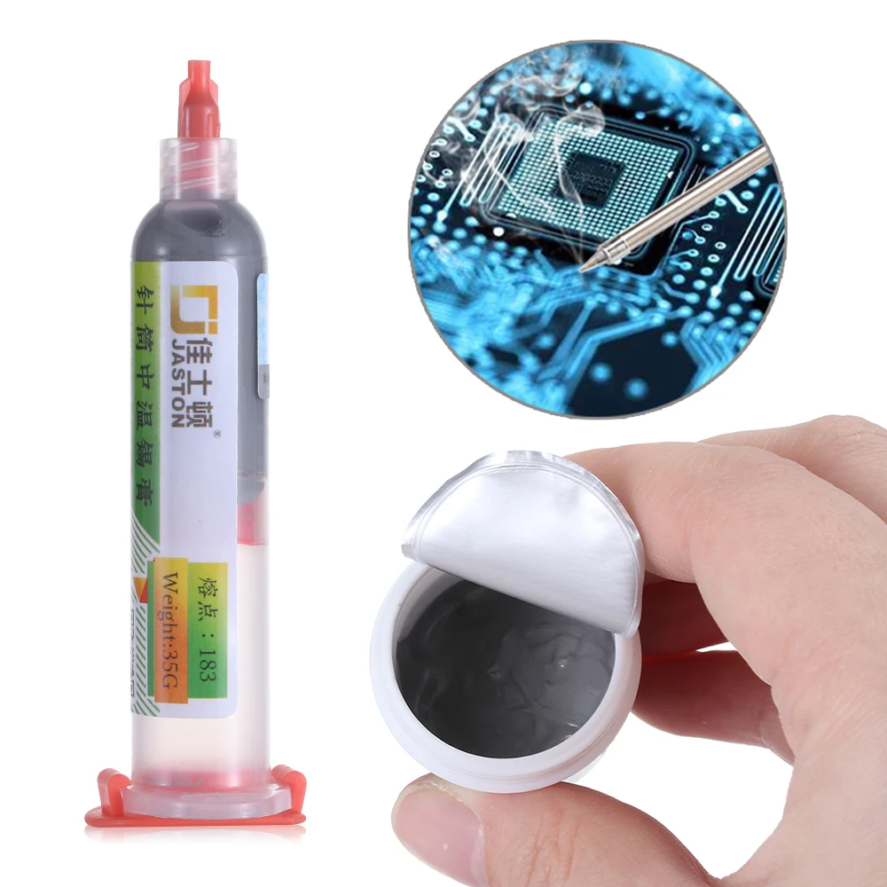 100% Новинка и высокое качество Уникальные рецепты, идеальная производительность, легко сварить, припой яркий и полный, без сварки, ложная сварка и так далее Хороший инструмент для пайки и сварки Материал: пластик + паяльная паста Цвет: как показано на картинке Размеры: прибл. 100 мм/27*39 мм Сплав: Sn63/Pb37 Микронах: 22-40um Температура плавления: 183 градусов Вес 35g Посылка включает в себя: 1 шт. паяльная паста