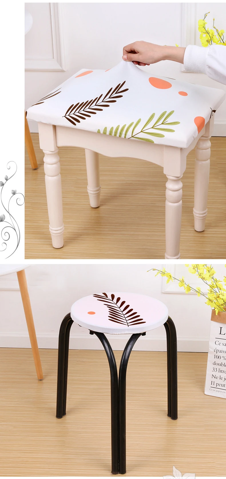 Новый эластичный чехол для туалетного столика, квадратный табурет, защита от пыли, Сменная обувь, чехол для табурета, Круглый съемный