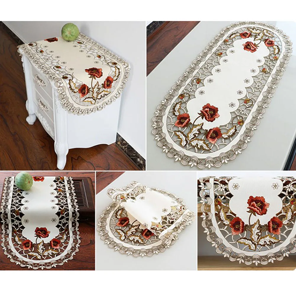Многоразовые винтажные скатерти с вышитыми розами, овальные скатерти для стола, атласная ткань, скатерть, декор для свадебной вечеринки