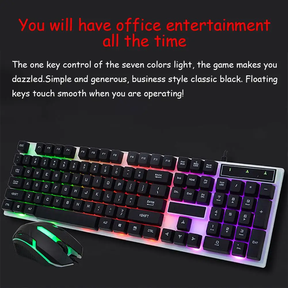 Клавиатура и мышь для офиса и развлечения: эффект радужного освещения, плавающая кнопка, комфортная работа!