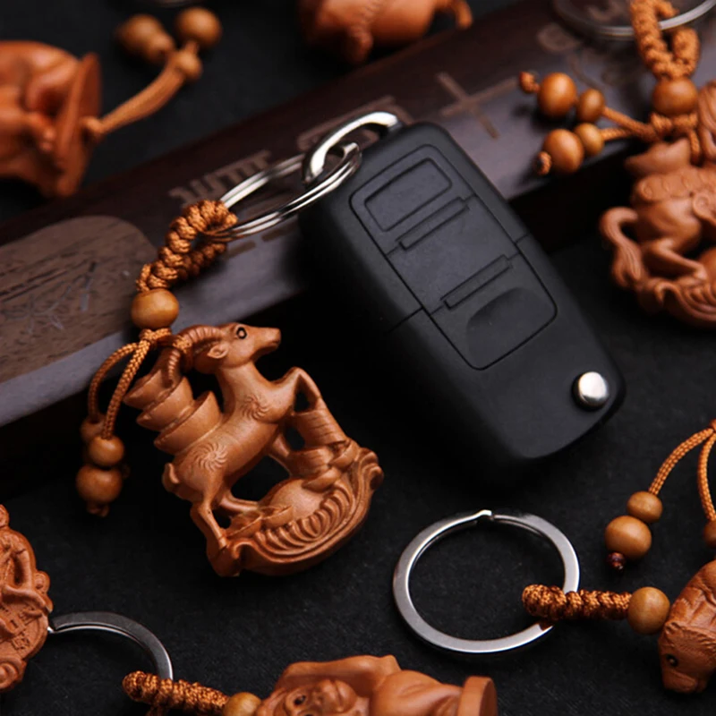 Изысканно вырезанные китайские персонажи животных, что означает безопасность и удачу, креативный брелок для вас.