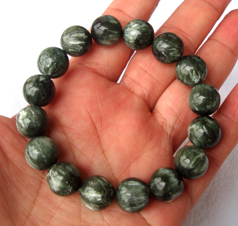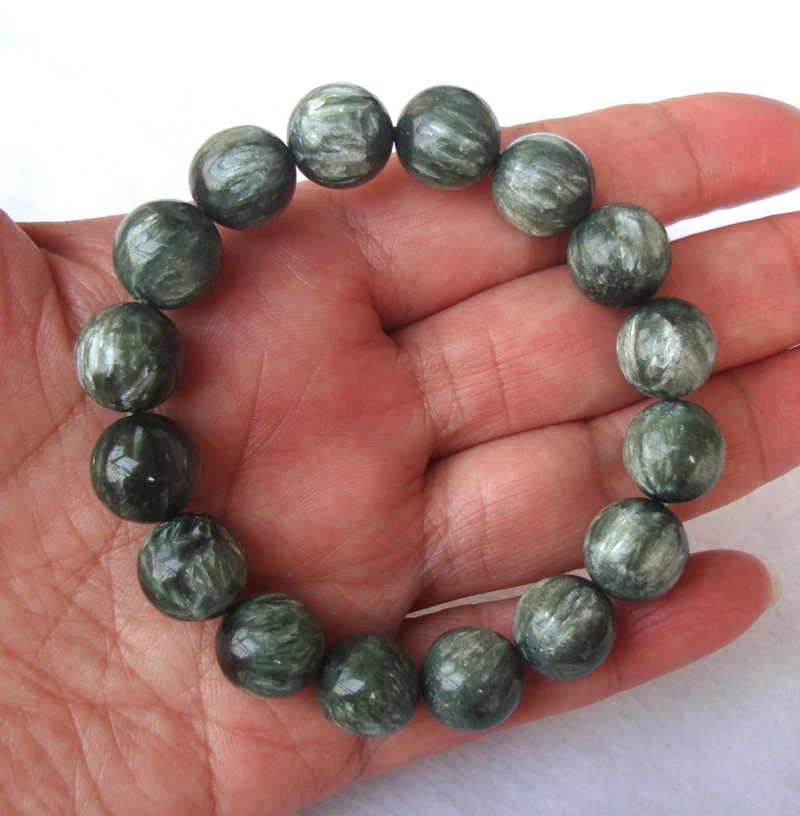 Натуральный Серафинит круглые бусины стрейч браслет 12 мм