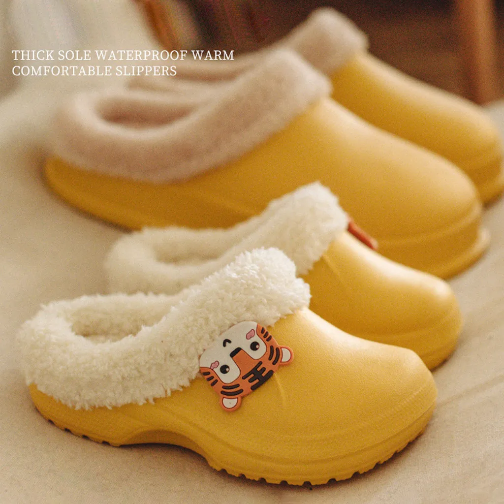 Детские теплые тапочки с подкладкой для мальчиков и девочек; Водонепроницаемая Домашняя и уличная садовая обувь