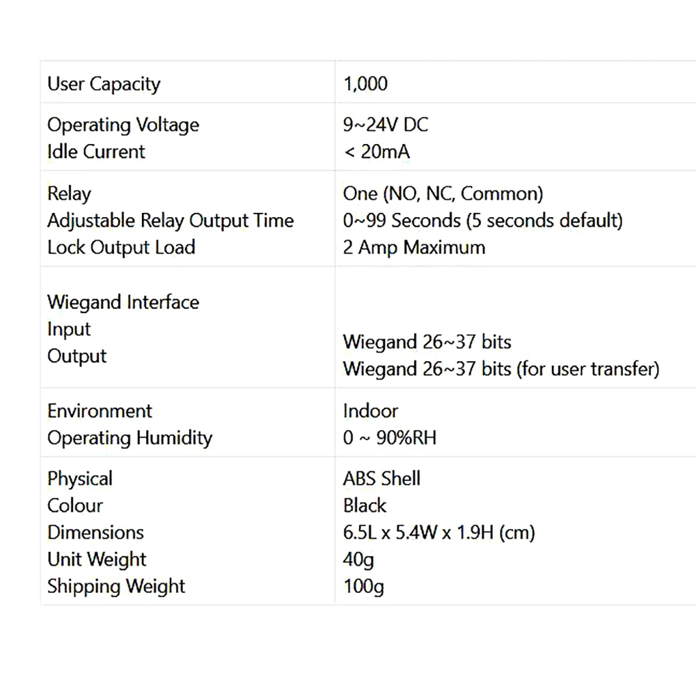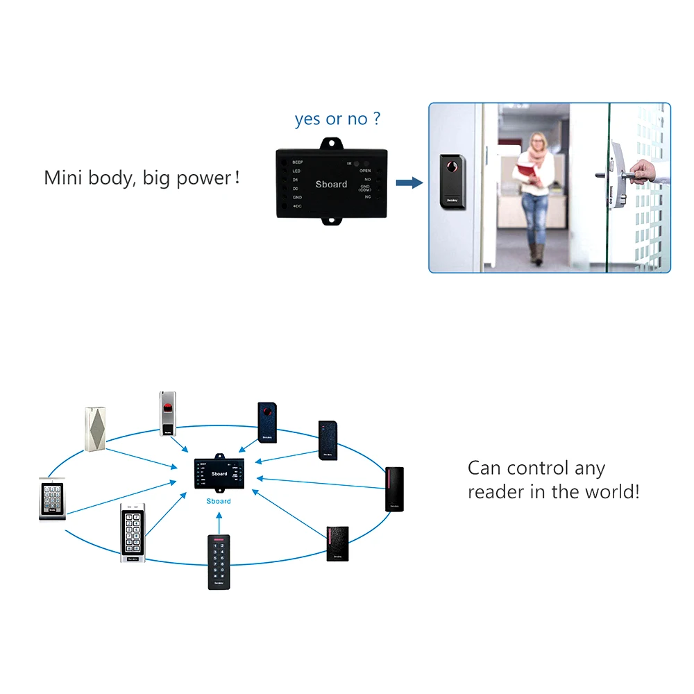 Описание: Плата-это мини-контроллер для одной двери, с входом Wiegand 26 ~ 37 бит, может подключаться к любому Wiegand reader Основные функции: > 1000 пользователей, данные пользователя могут быть перенесены > Можно подключить к любому ридеру с выходом Wiegand 26 ~ 37 бит > Может подключаться к любому считывателю клавиатуры с 4 битами, 8 битами (ASCII) или 10 битами виртуального номера