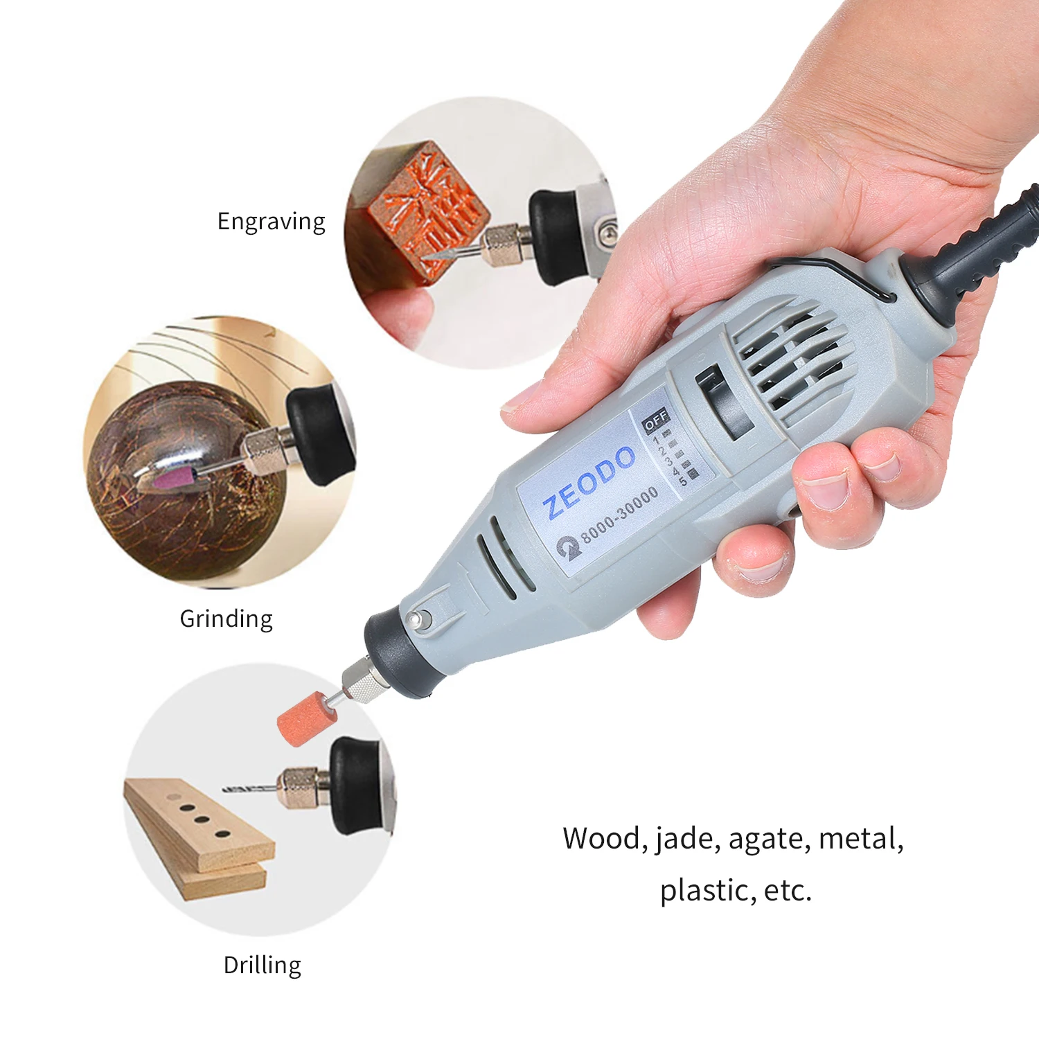 С регулируемым 5 бесступенчатое регулирование скорости и универсальный 3,2 мм металлическая гайка, этот Электрический поворотный инструмент может быть применена для резки, гравировка, резьба, бурение, шлифовка, шлифовка, полировка и полировка.