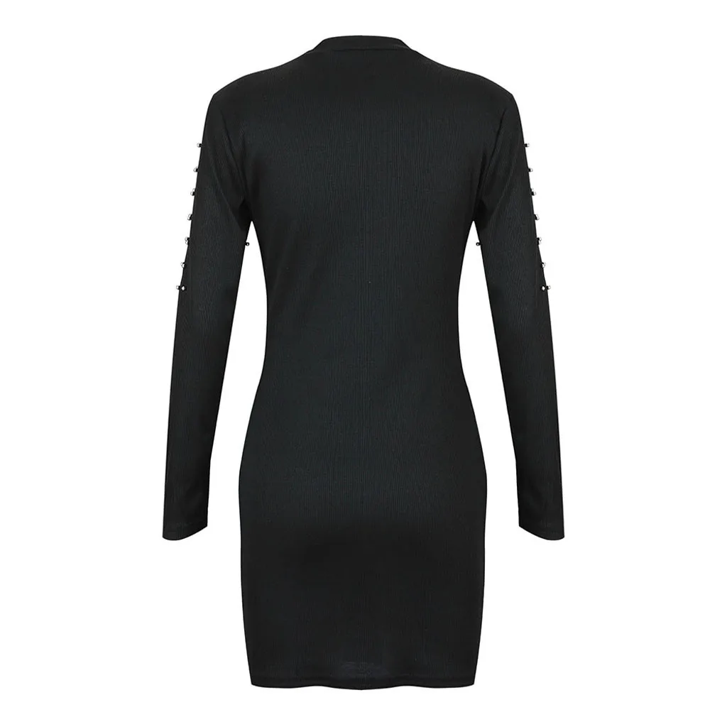 Wear Sexy O-образным вырезом Бисероплетение длинным рукавом тощий женщин Мини платье Sexy Night Club