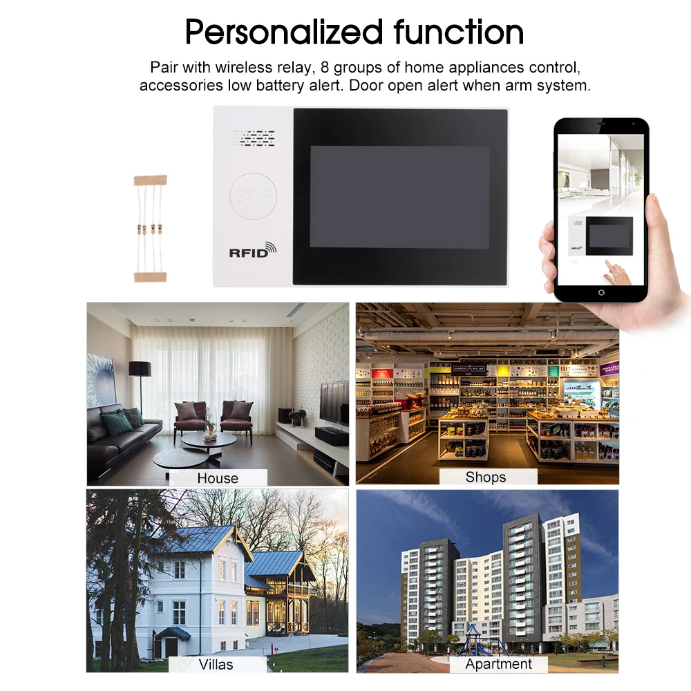 * Персонализированная Функция: сопряжение с беспроводным реле, 8 групп управления бытовой техникой, оповещение о низком заряде батареи. Откройте оповещение при помощи системы arm.