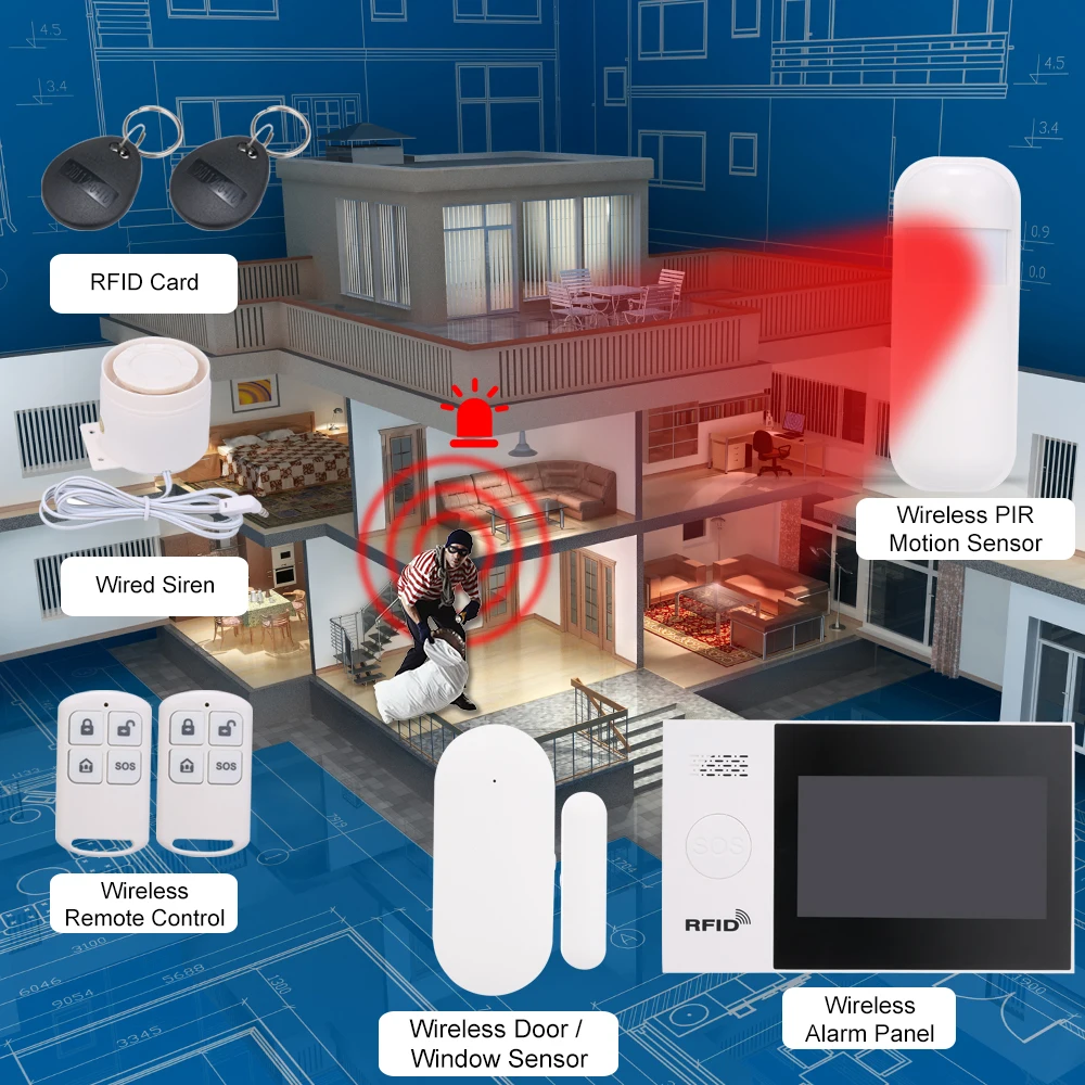 * 100 зон беспроводной защиты, 10 RFID карт, 3 проводных зоны защиты.