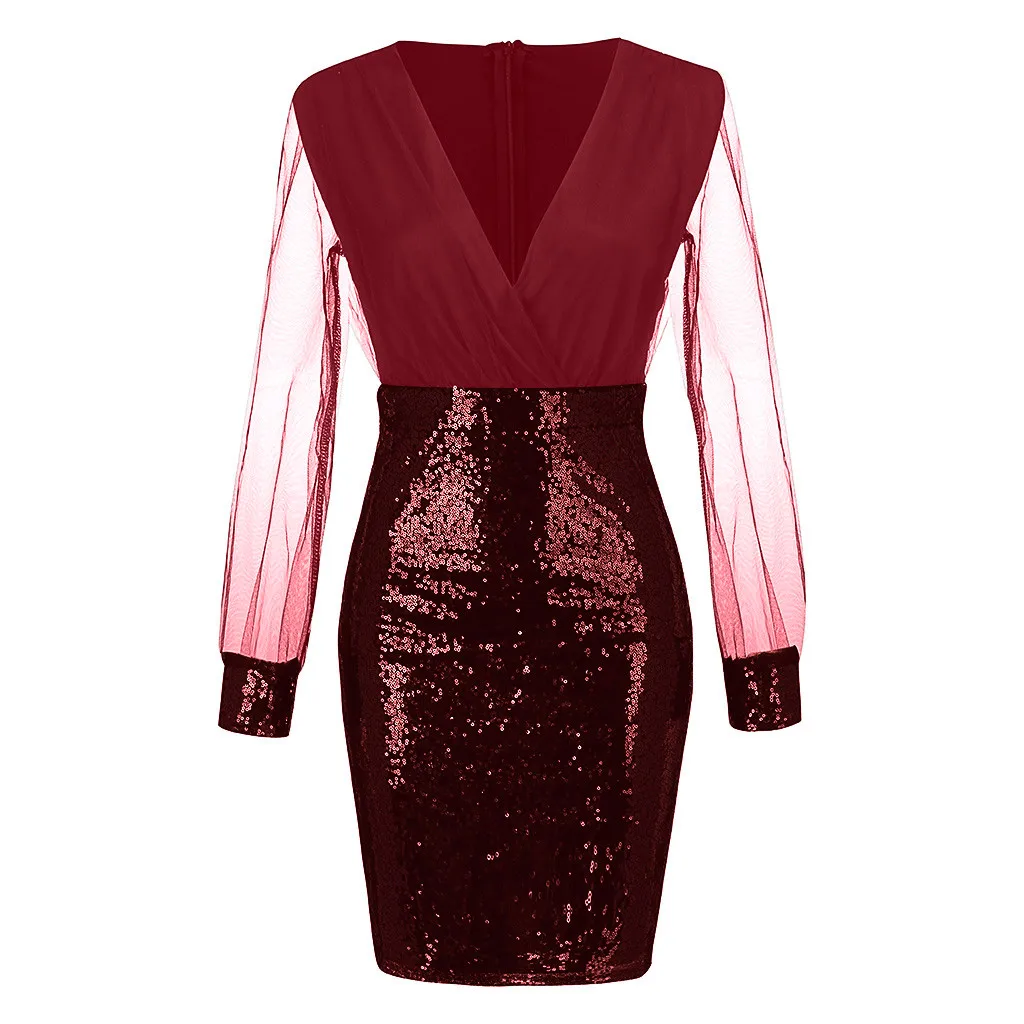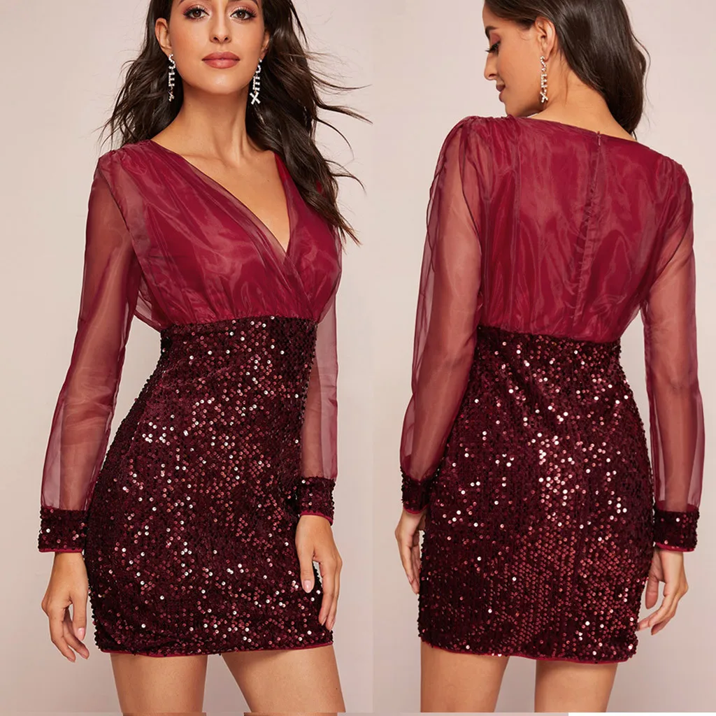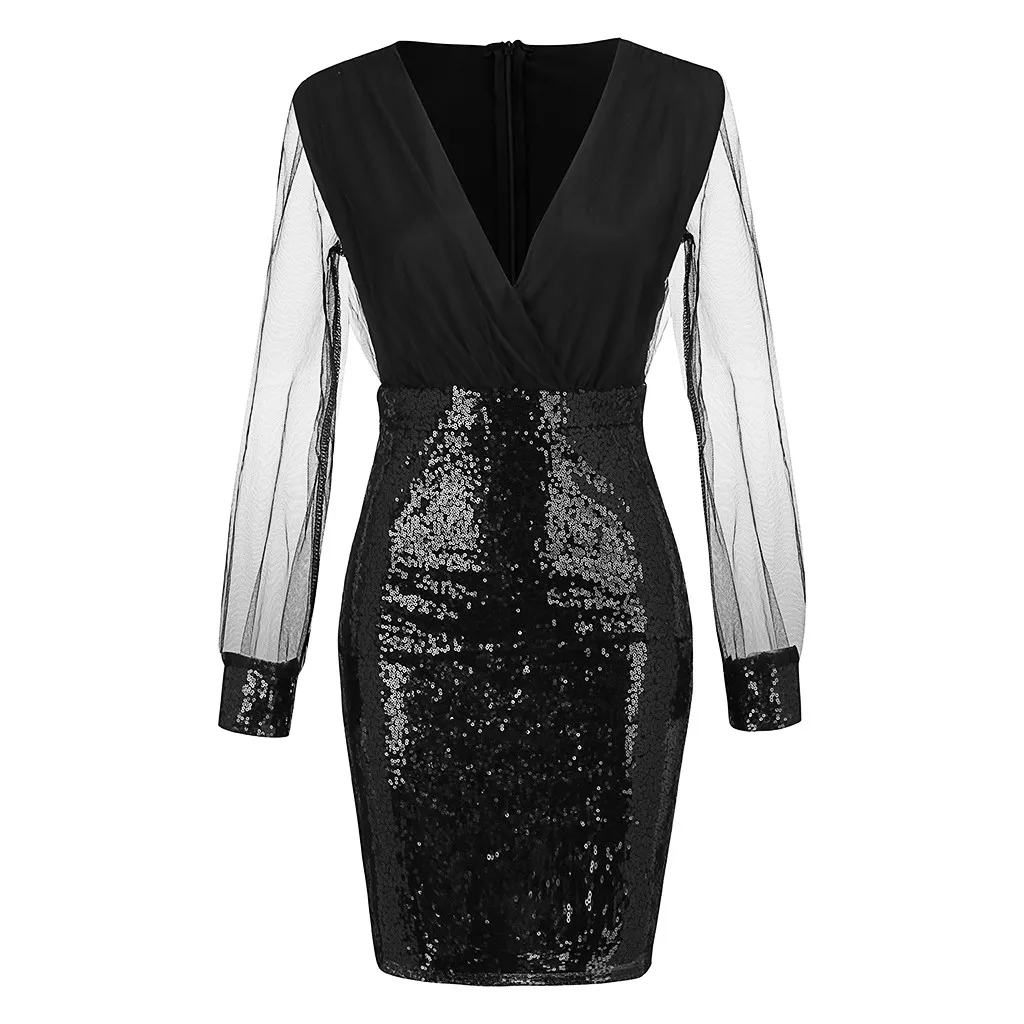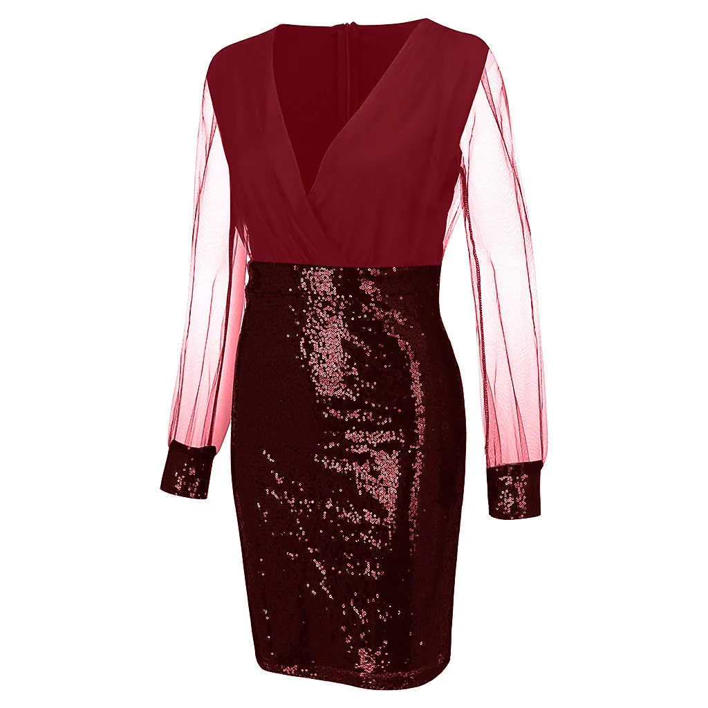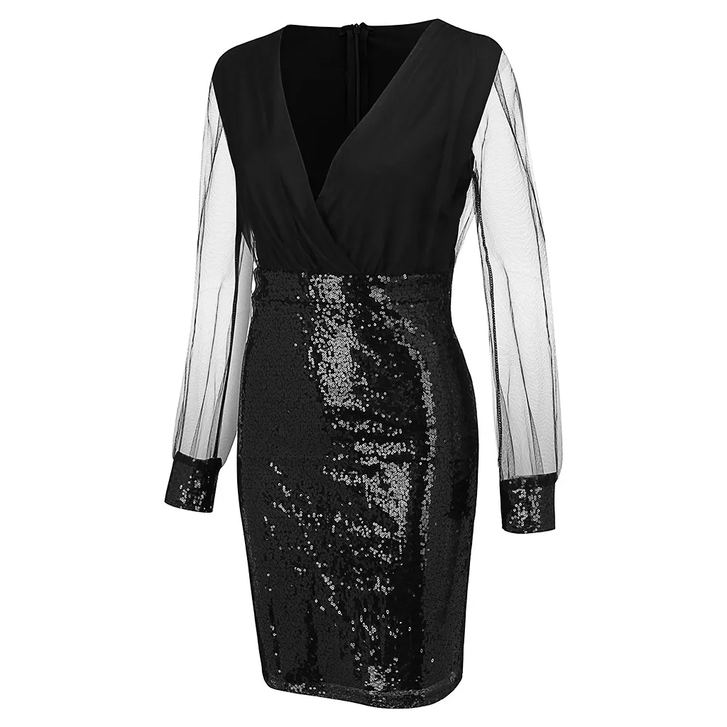 Модное женское платье с v-образным вырезом, Сетчатое платье с блестками, повседневное элегантное платье для вечеринки