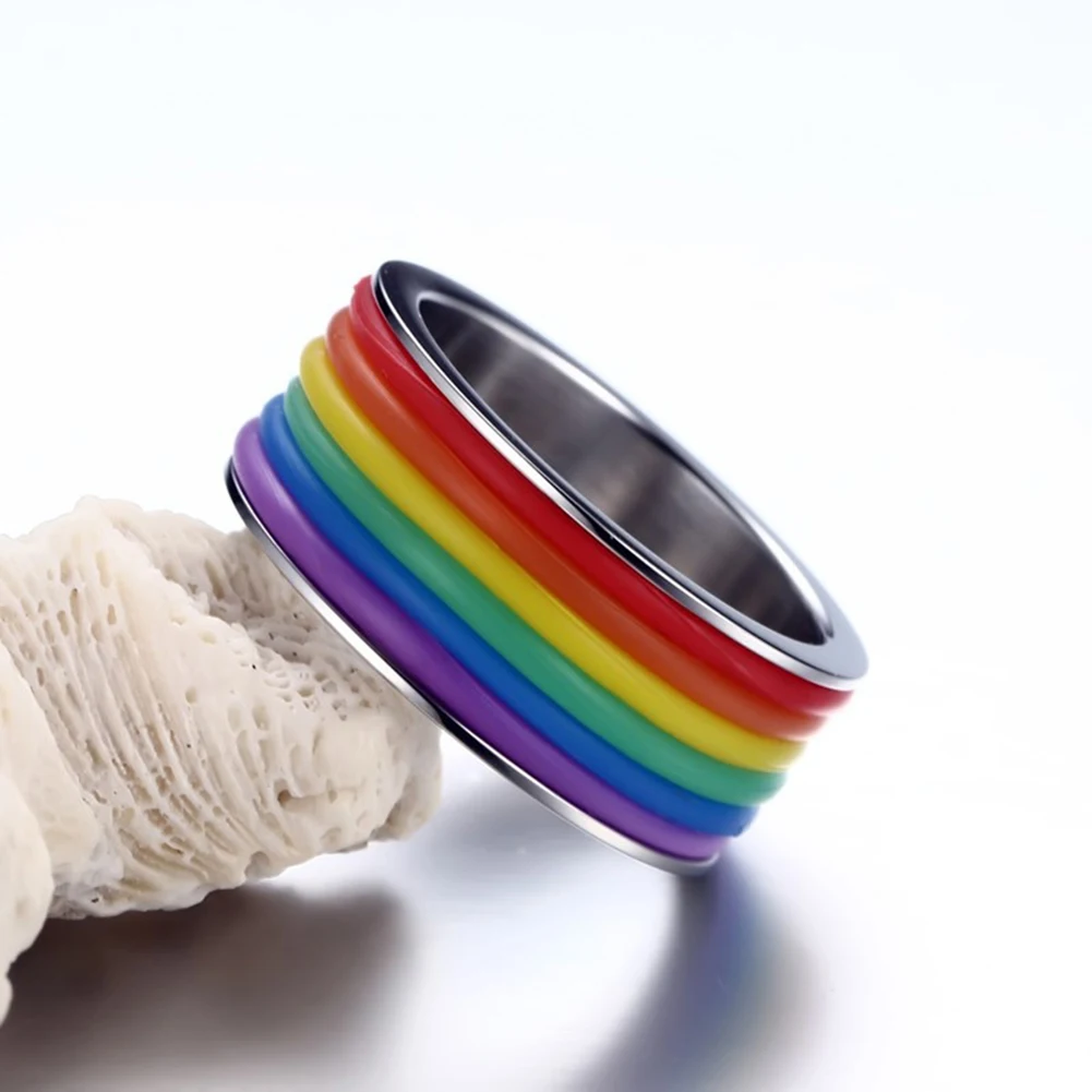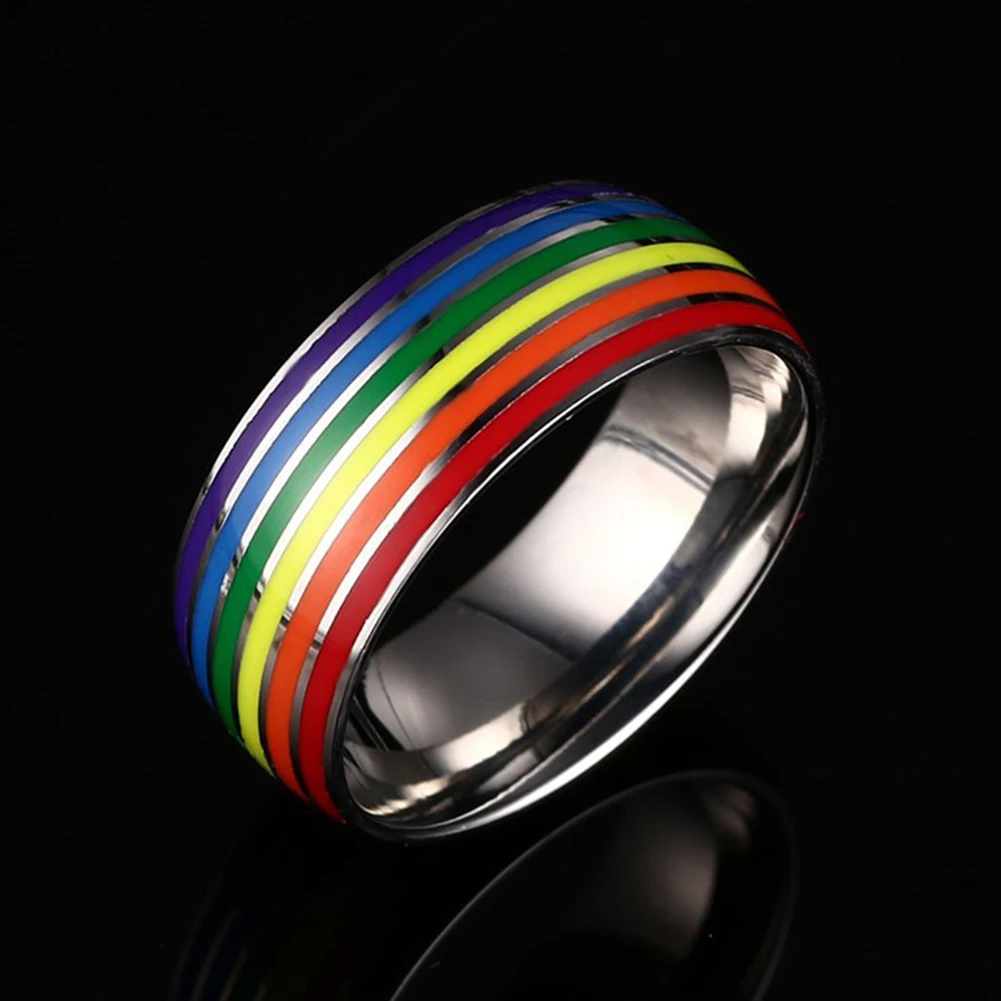 MenWomenRainbow цветные кольца из нержавеющей стали для лесбиянок и геев