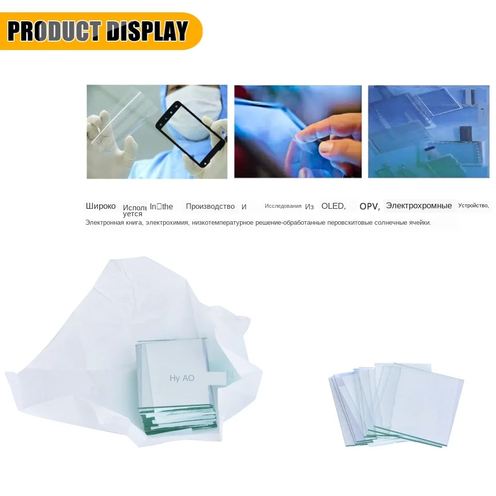Индиевое Оловянное оксидное стекло (ITO) с покрытием относится к группе токопроводящих стекол TCO (Прозрачный Проводящий оксид). стекло ITO обладает низким сопротивлением листа и высоким коэффициентом пропускания, и оно широко используется в производстве и исследованиях OLED, OPV, электрохромных устройств, электронных книг, электрохимии, Низкотемпературный раствор-обработанные перовские солнечные элементы, и др.