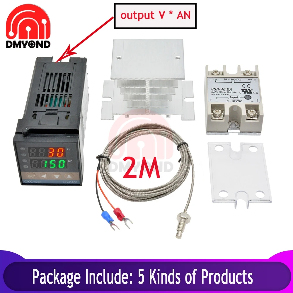 REX-C100 цифровой дисплей термостат регулятор температуры V * Выход K введите 40A SSR реле 1 м термопары зонд RKC радиатор
