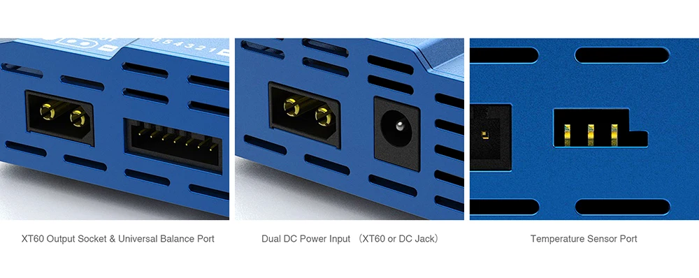 Внешний Порты и разъёмы: 1-6s баланс разъем-XH, Температура зонд разъем, Батарея разъем постоянного тока, Вход