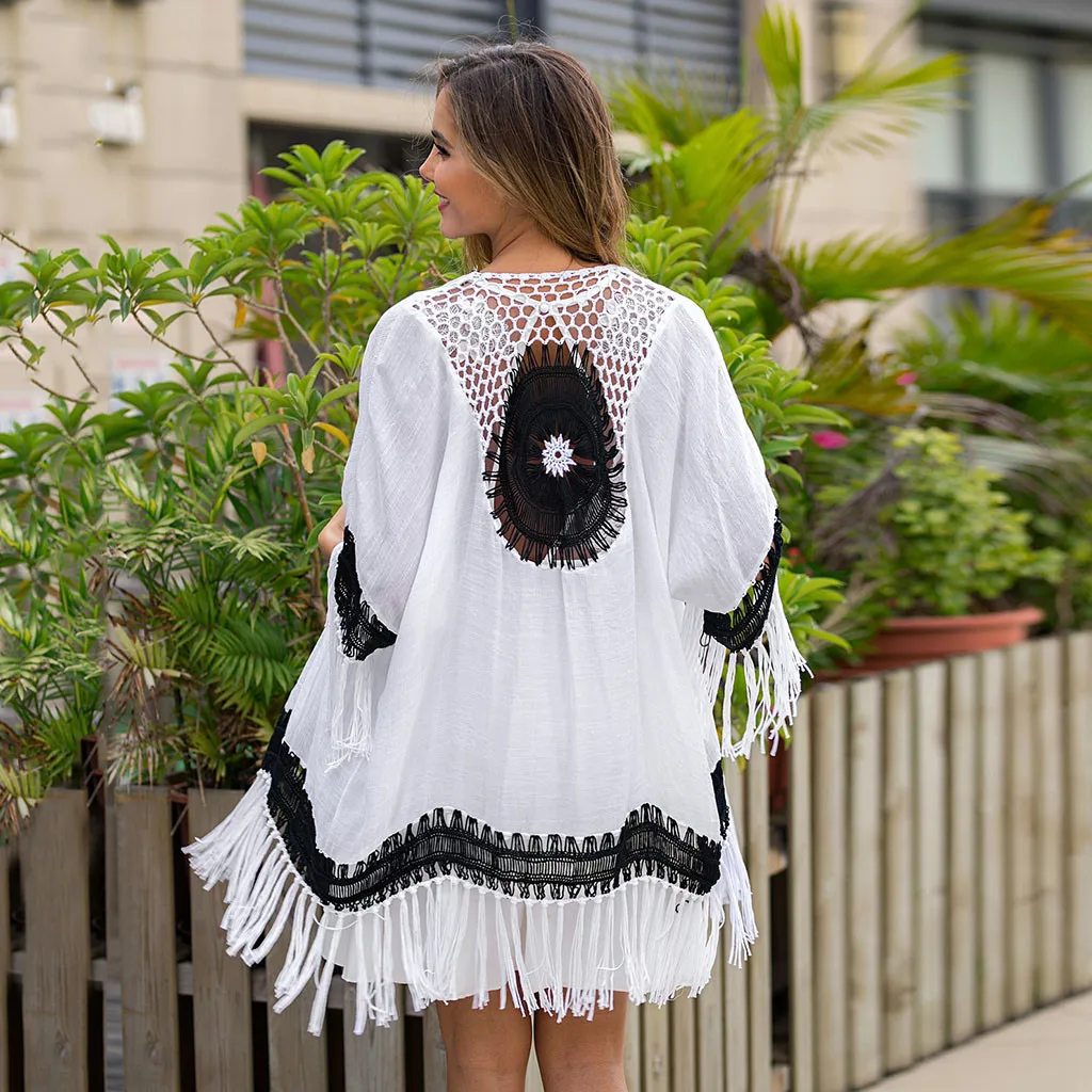 3.3/4Рукав,МиниДлина,Ажурное кружево, кроше, кисточки,Очаровательно и привлекательно. Простой, но модный. Свободная посадка. Предотвращает Кожа Повреждение при игре на пляже.