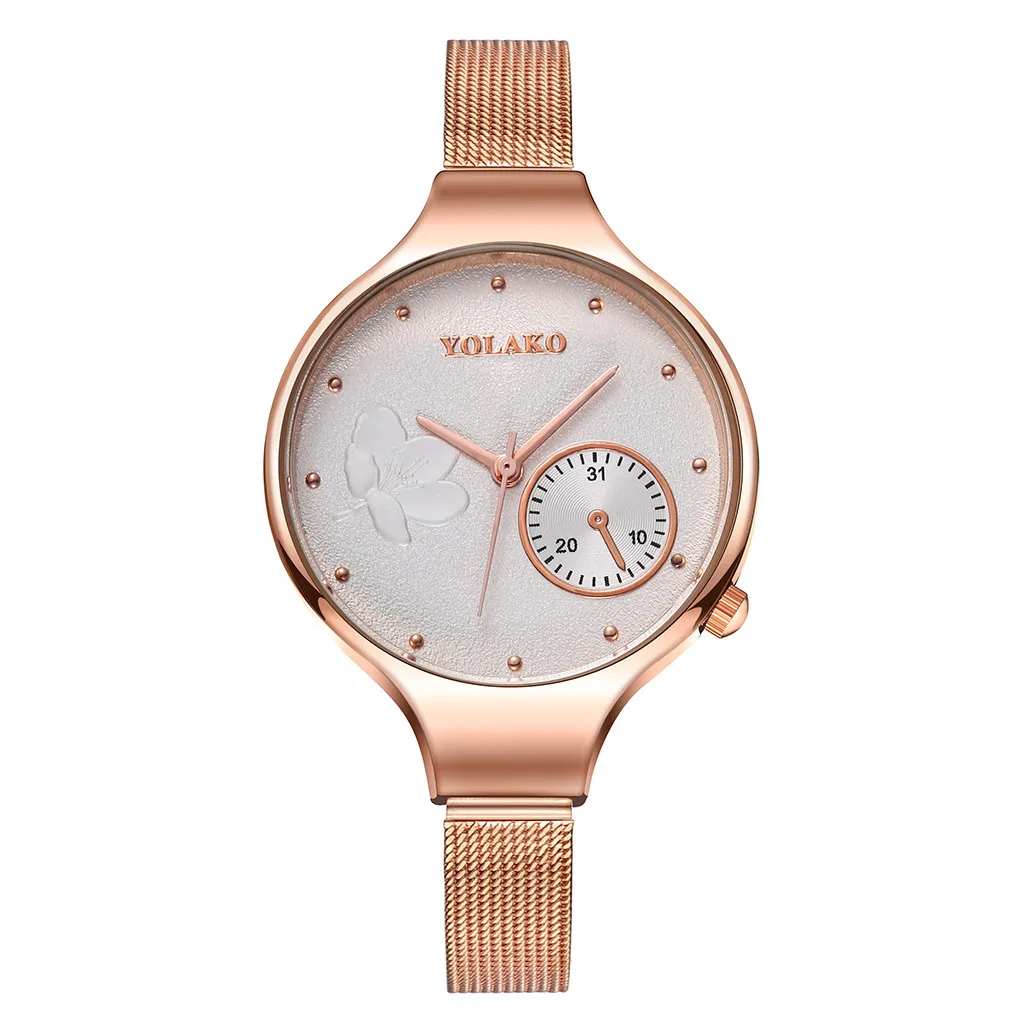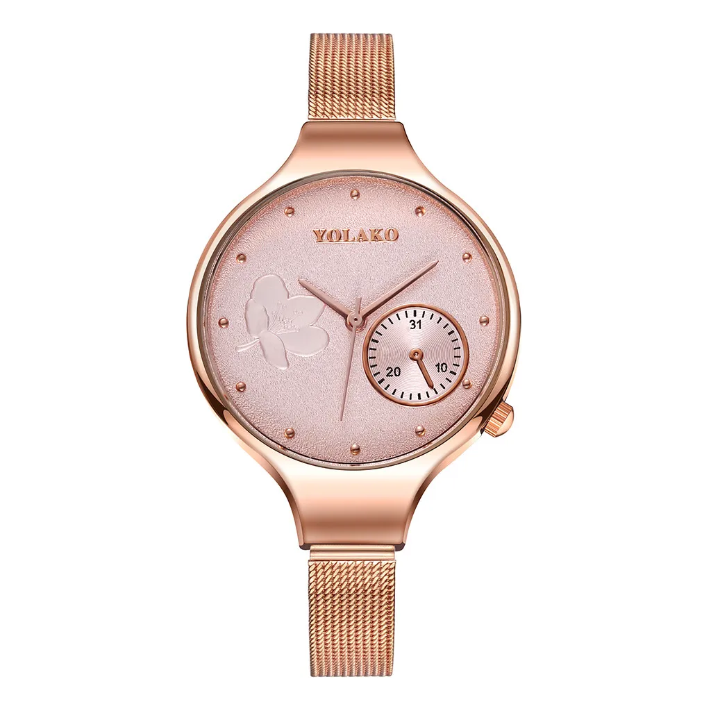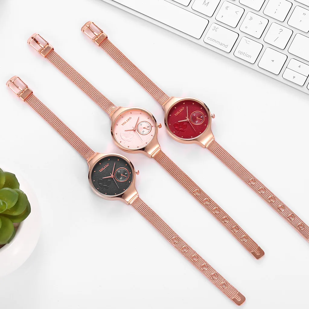Модные женские часы из розового золота с креативным цветком и сетчатым ремешком из нержавеющей стали женские кварцевые часы женские часы reloj mujer