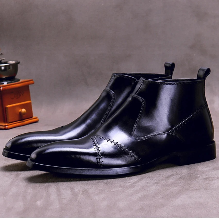 Итальянские дизайнерские мужские Ботильоны ручной работы из натуральной кожи; Мужские ковбойские ботинки с острым носком на высоком каблуке