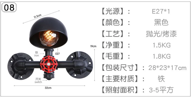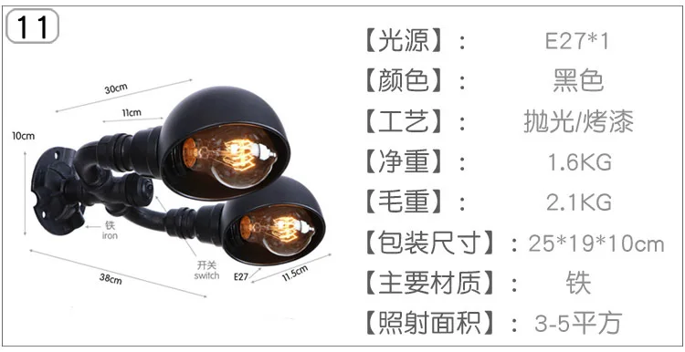 (Тип A-K) 220v водопроводная труба настенная лампа ретро промышленного черный Спальня Крытый подвесной светильник в декоративной железной одиночный/двойной настенный светильник приспособление