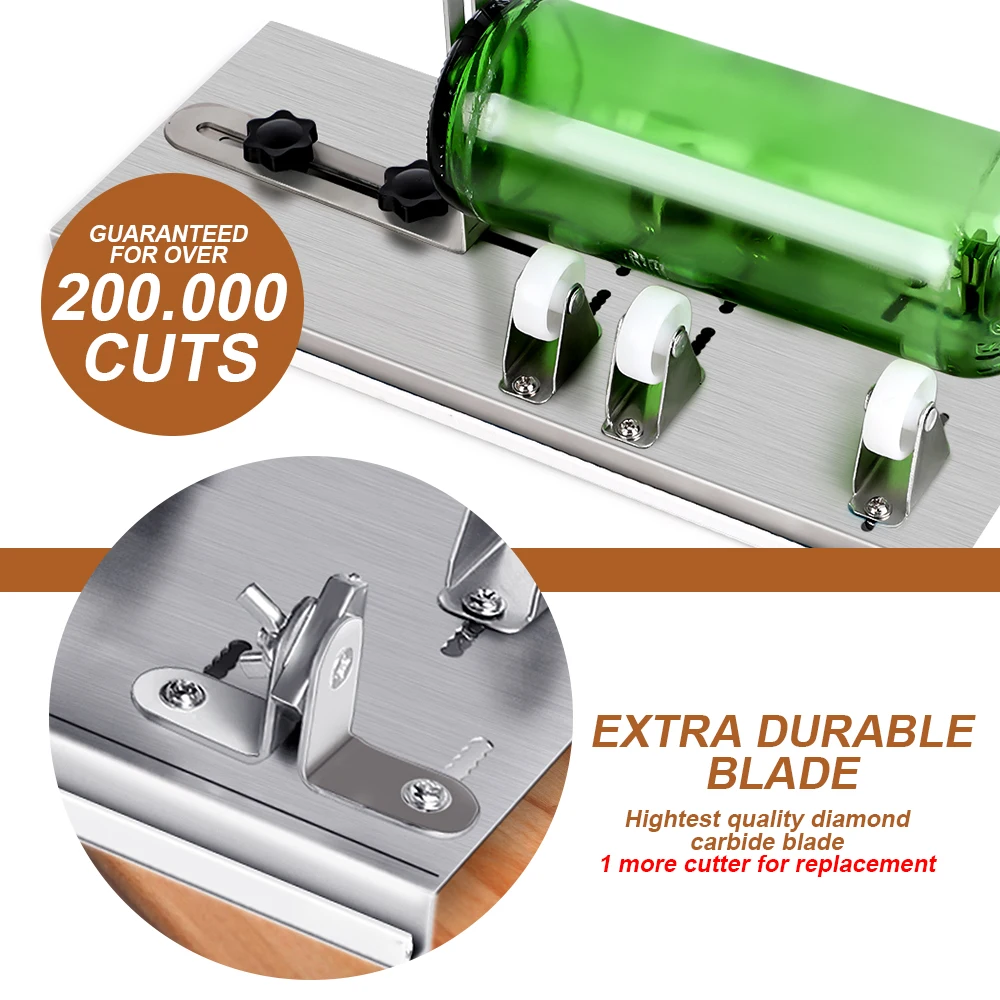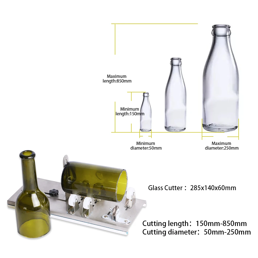 Простота в использовании: Положите бутылку на резак для бутылок, установите постоянное среднее давление и поверните стеклянную бутылку